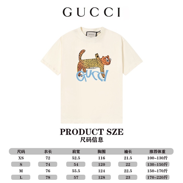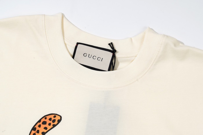 グッチユニセックスアイボリークルーネック半袖Tシャツu921