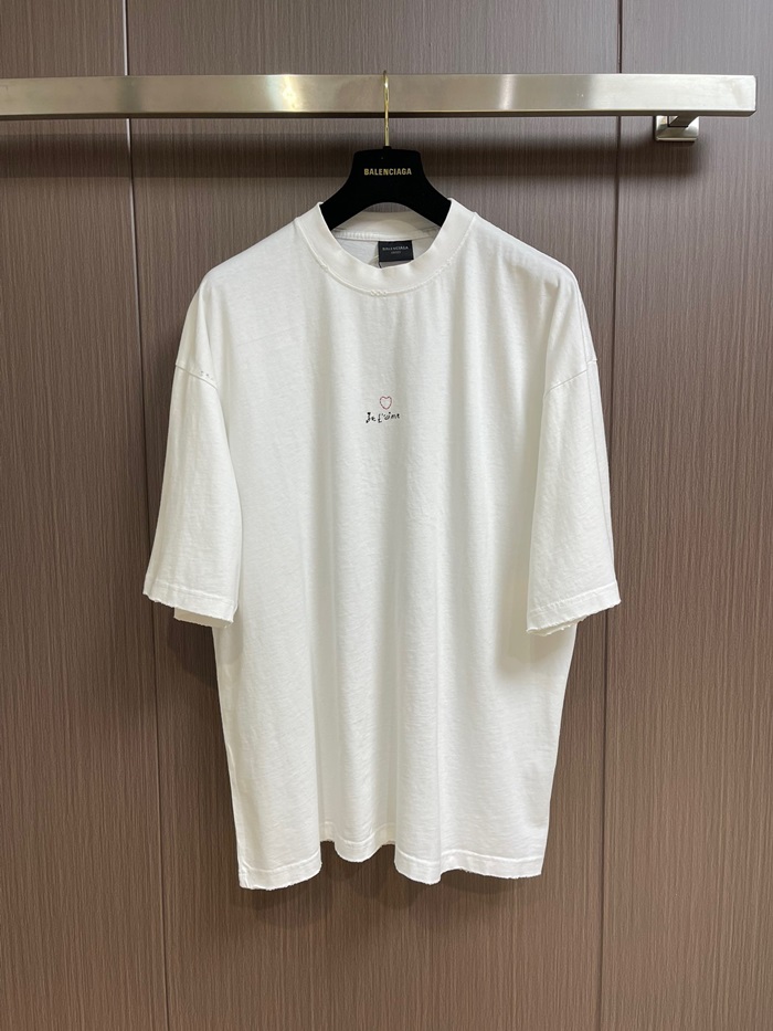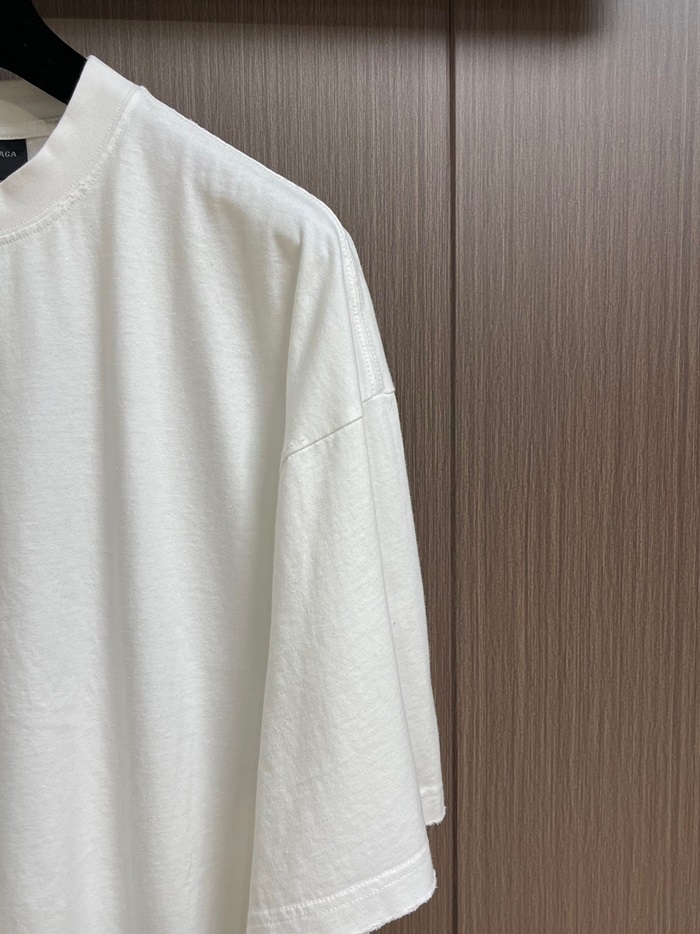 バレンシアガメンズホワイトクルーネック半袖Tシャツa556