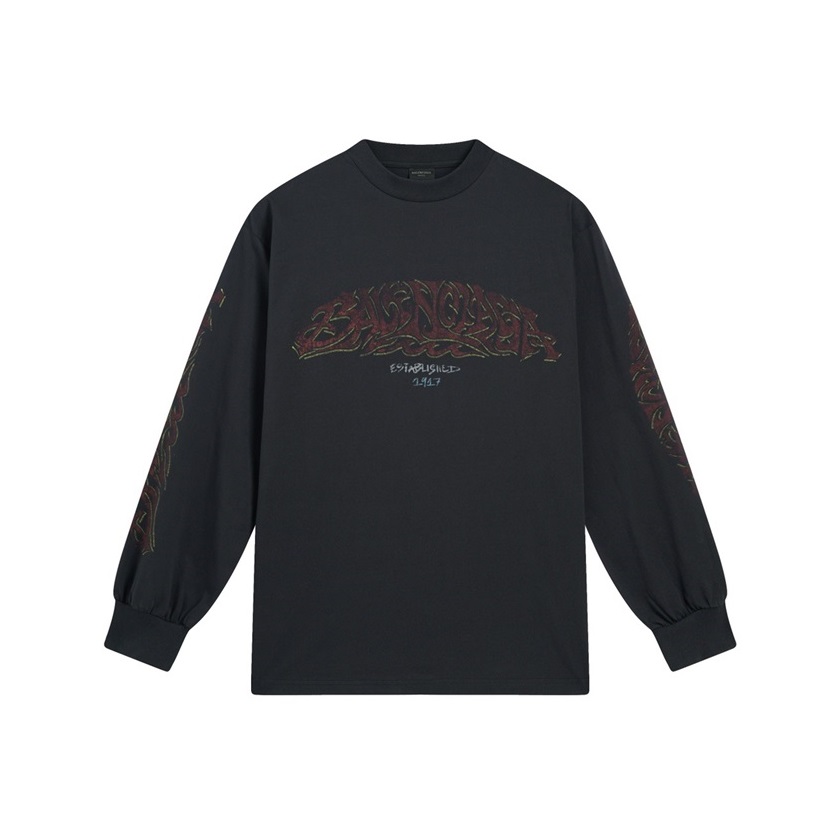 バレンシアガユニセックスブラックスウェットシャツa558
