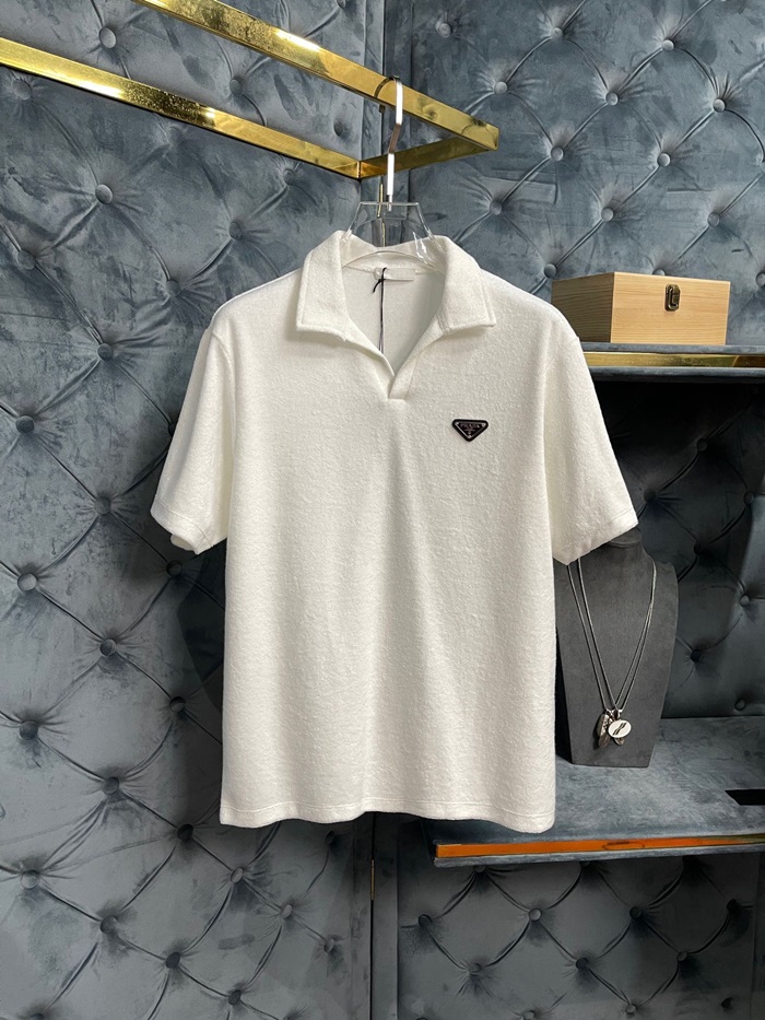 プラダメンズホワイトポロ半袖Tシャツr673