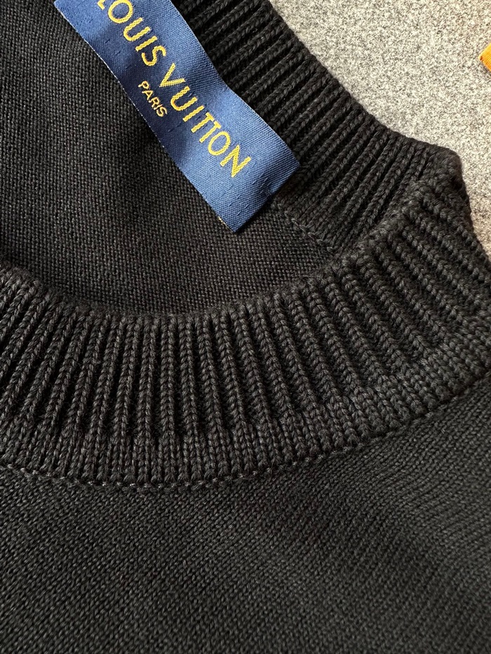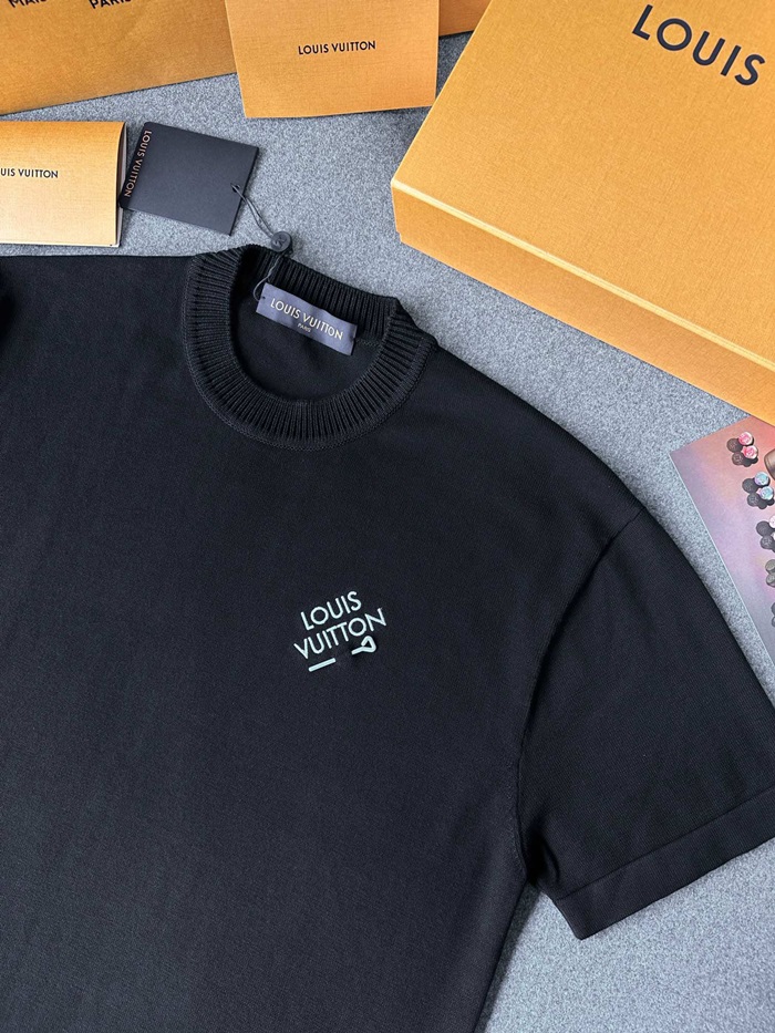 ルイヴィトンメンズクルーネックブラック半袖Tシャツv1699