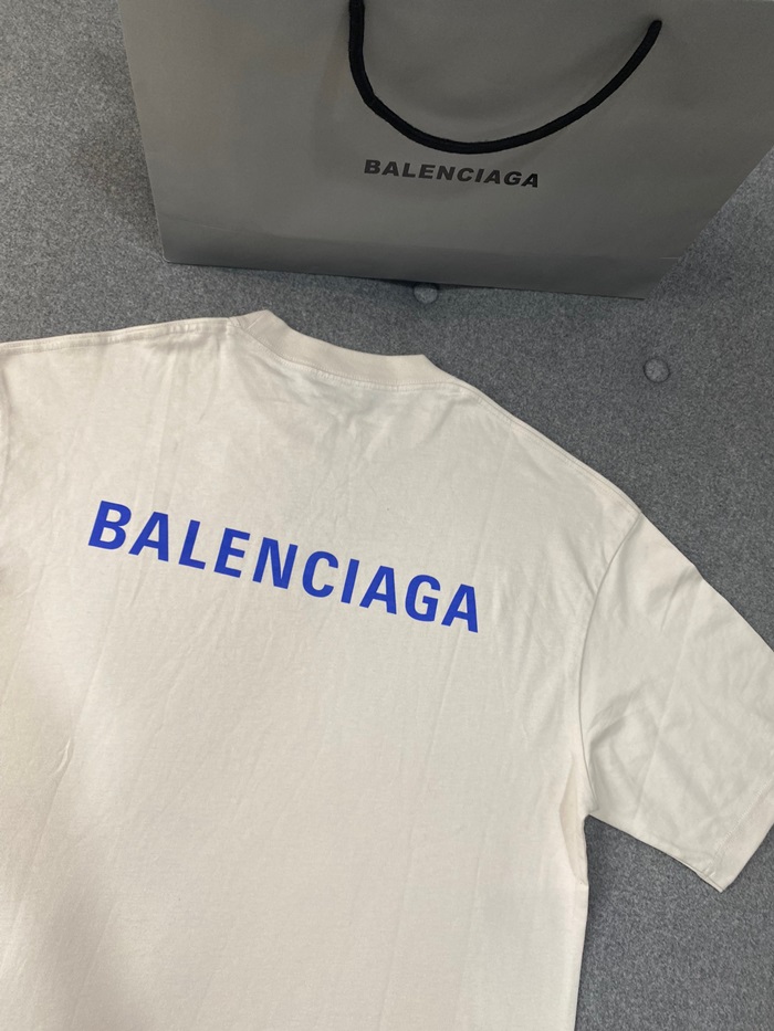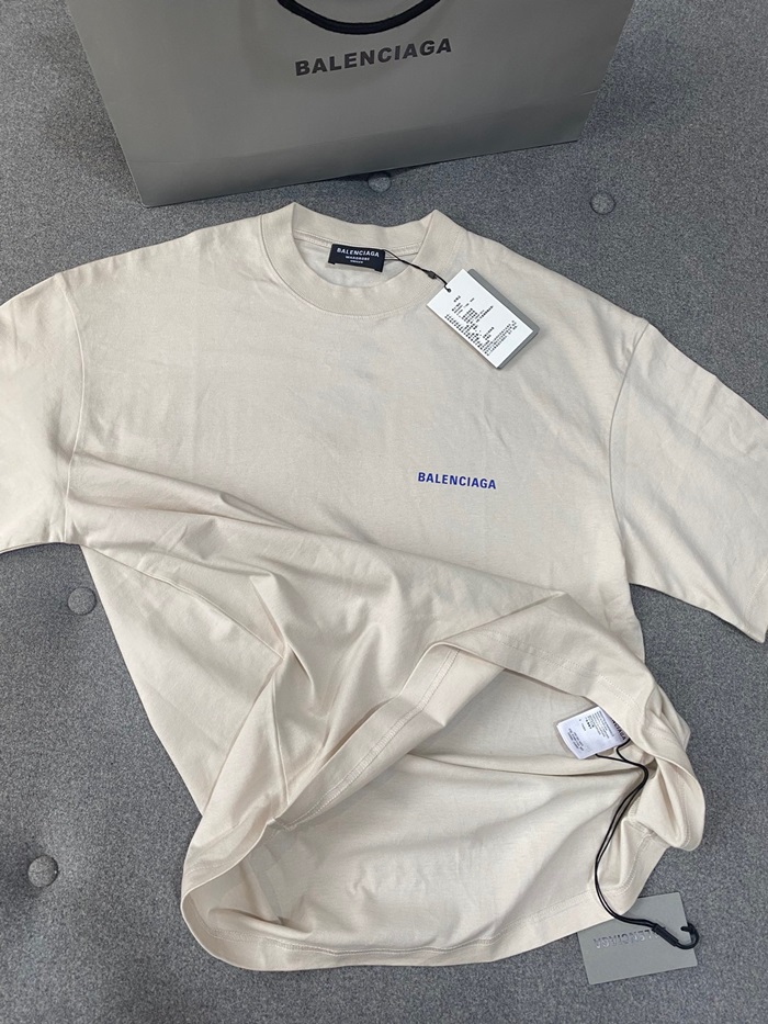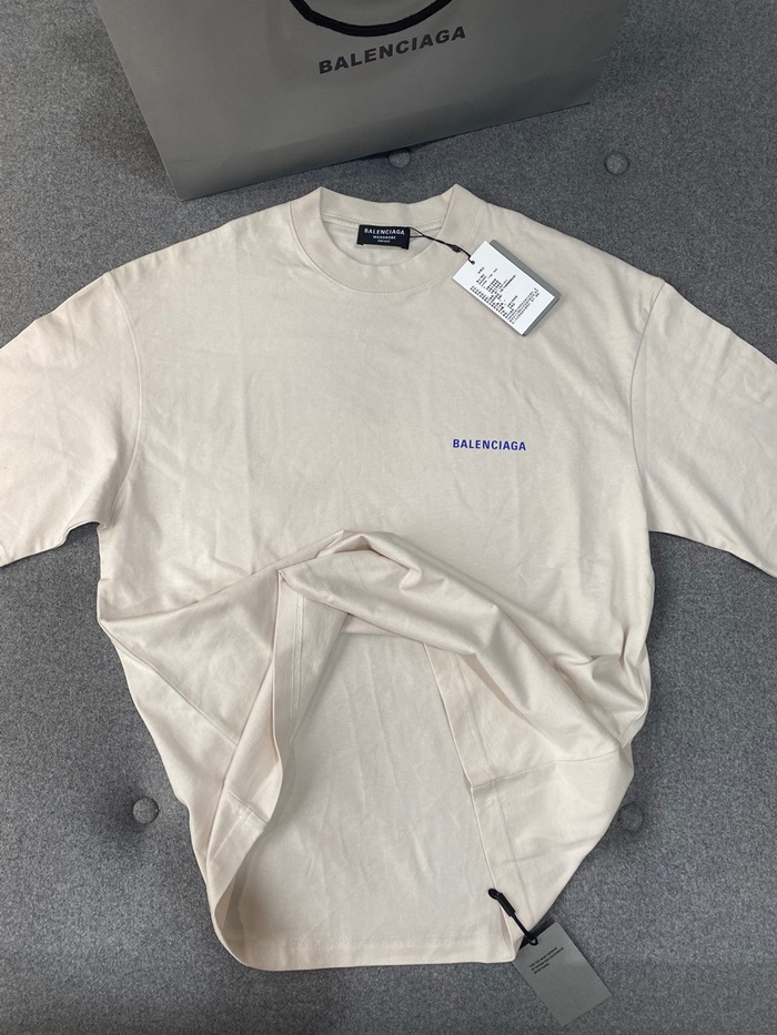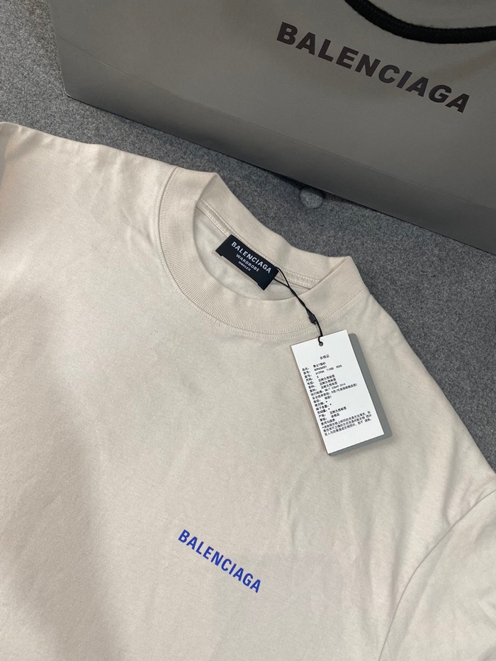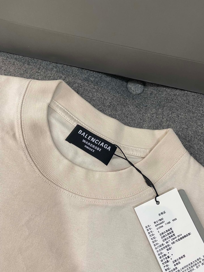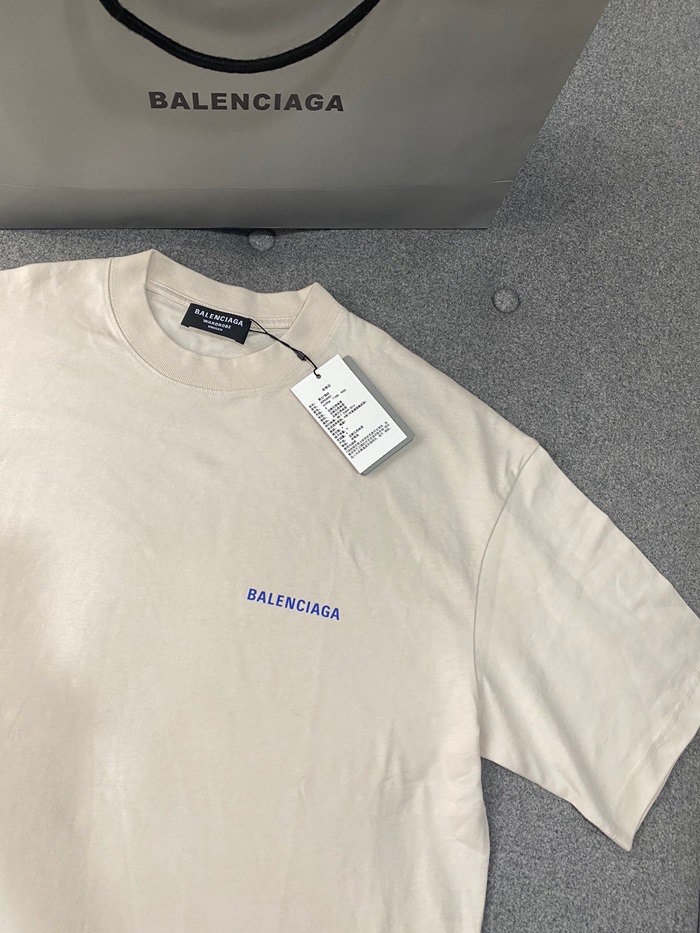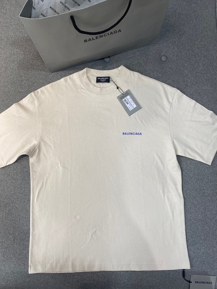 バレンシアガメンズアイボリークルーネック半袖Tシャツa562