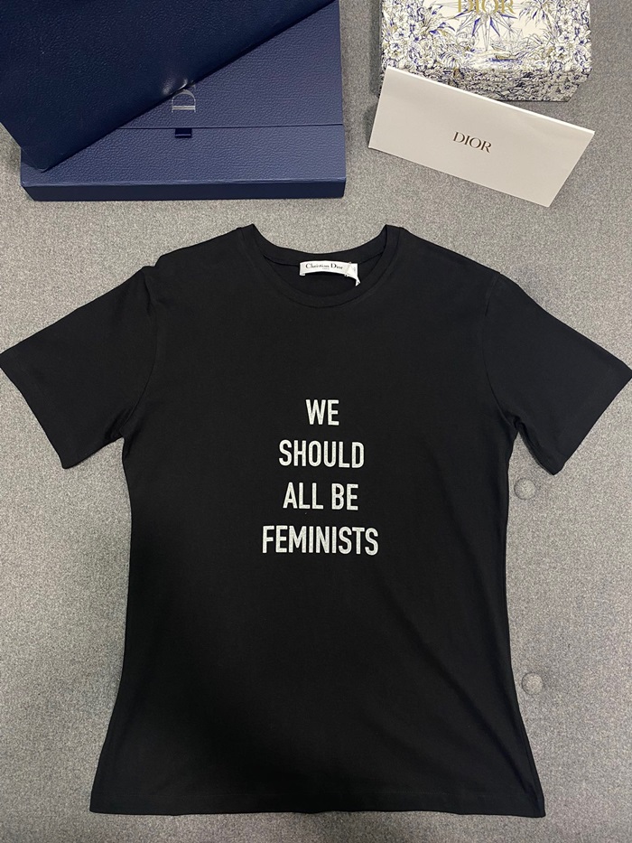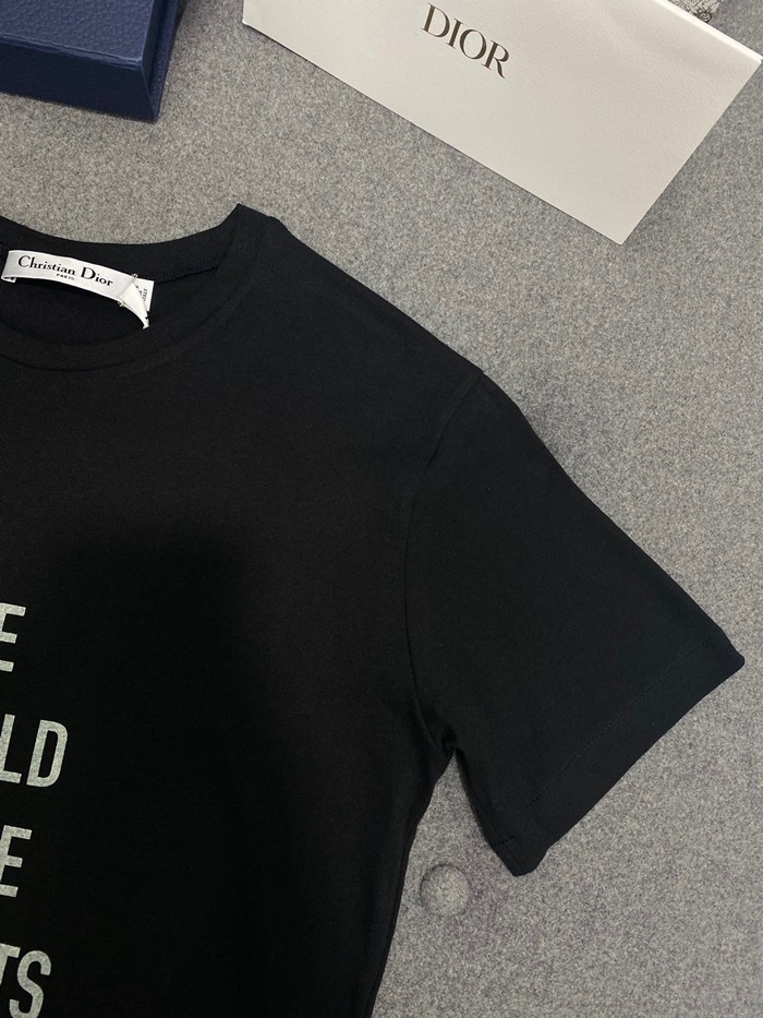 ディオールレディースブラッククルーネック半袖Tシャツi607