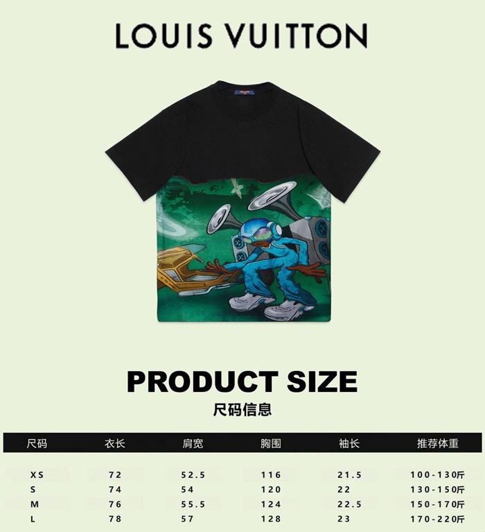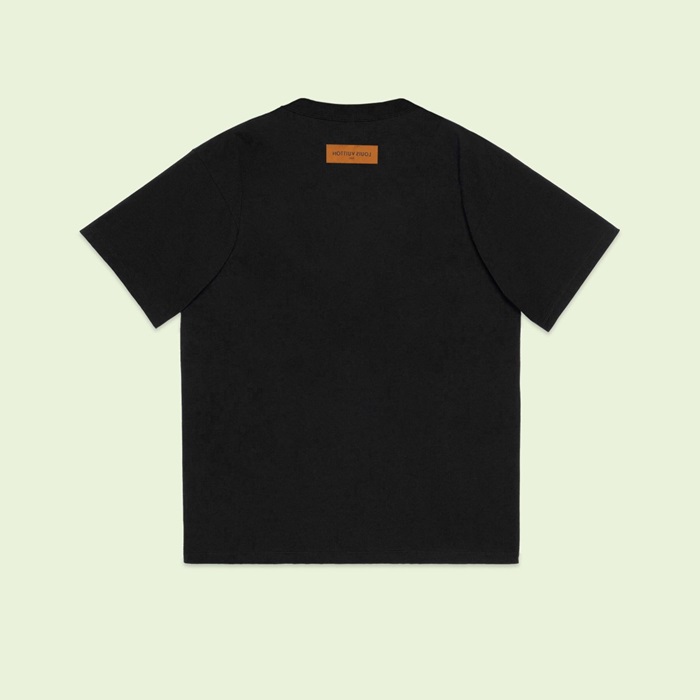 ルイヴィトンメンズクルーネックブラック半袖Tシャツv1702
