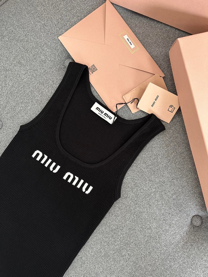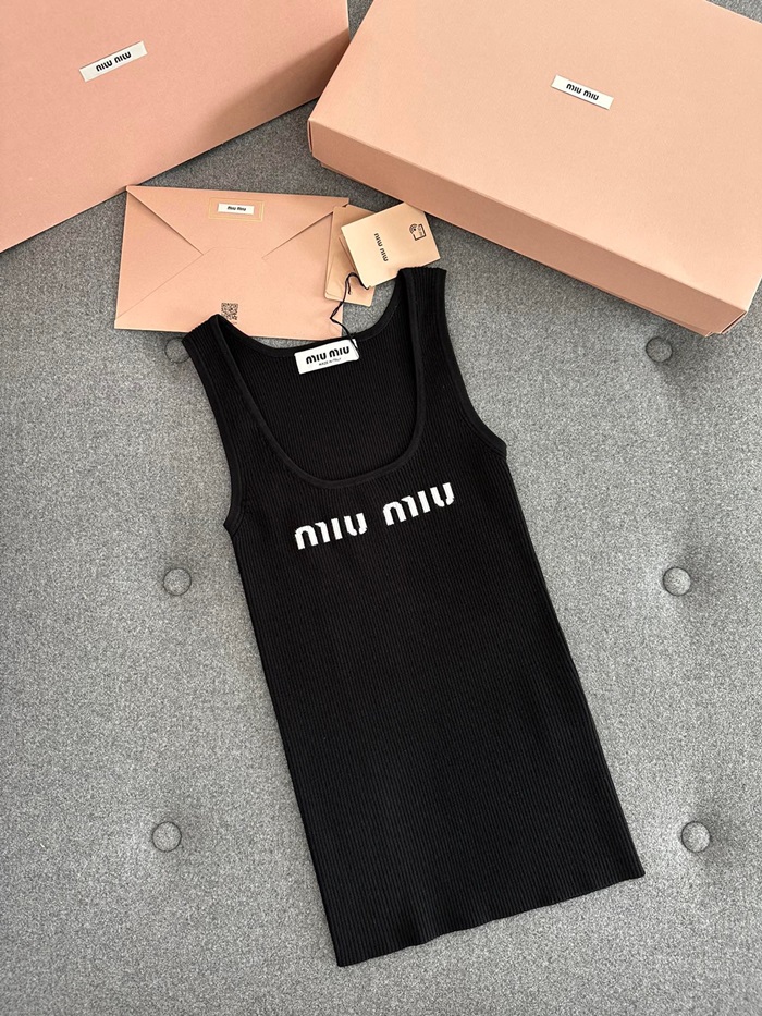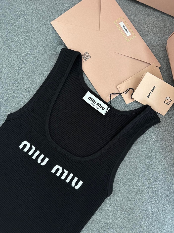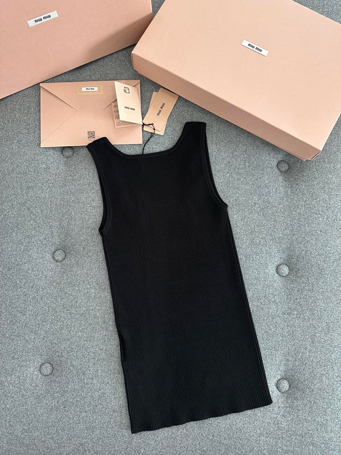 ミュウミュウレディースクルーネックブラックタンクトップu302