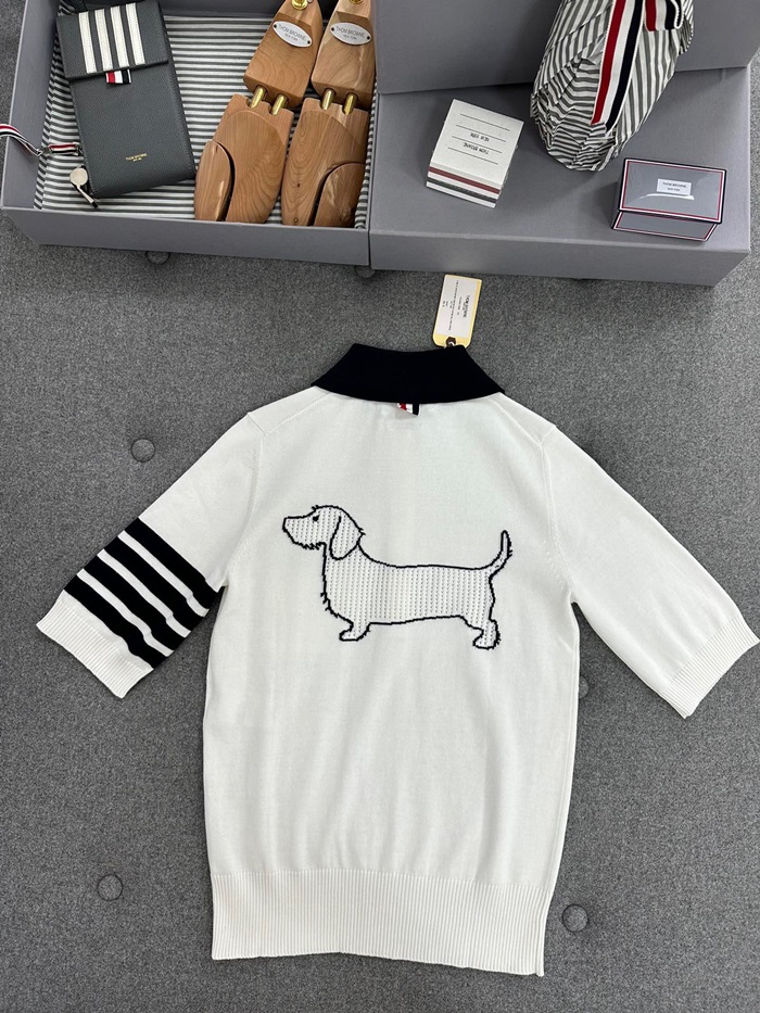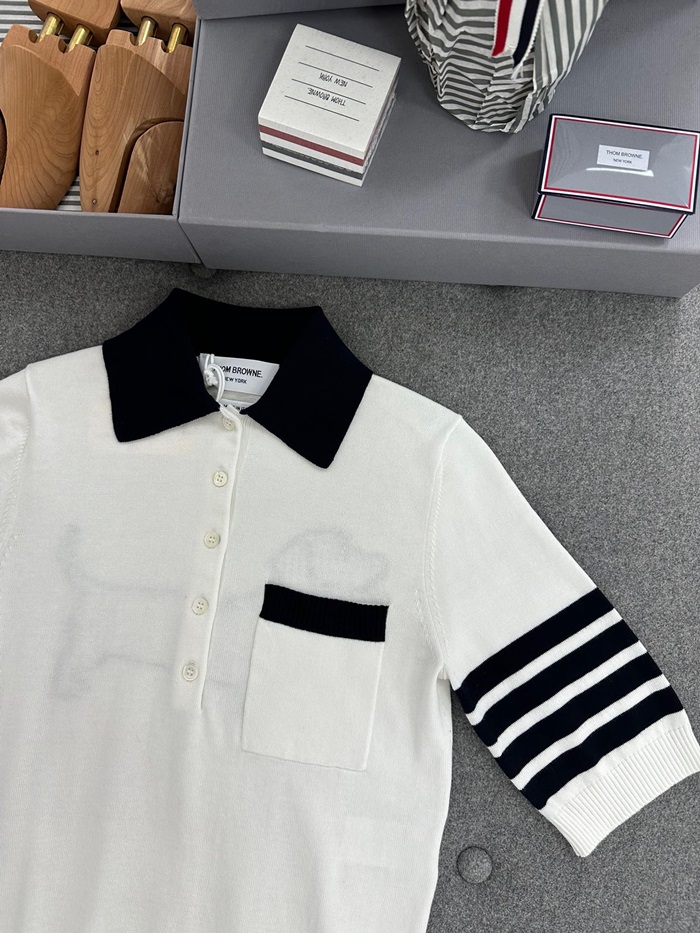 トムブラウンレディースホワイトポロ半袖Tシャツh84