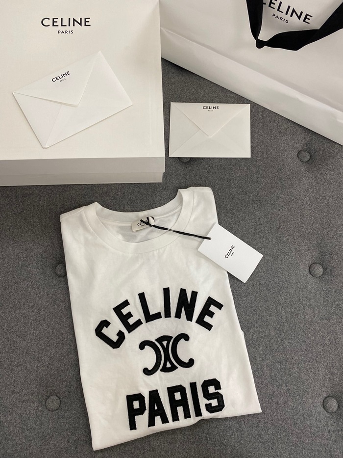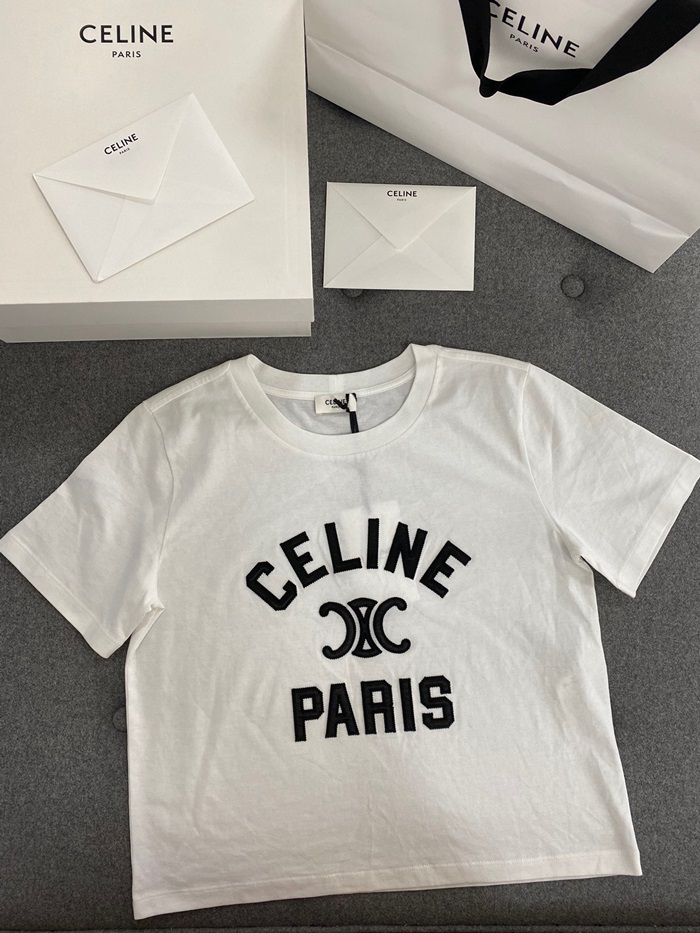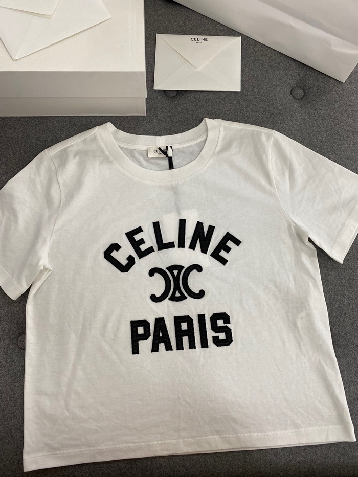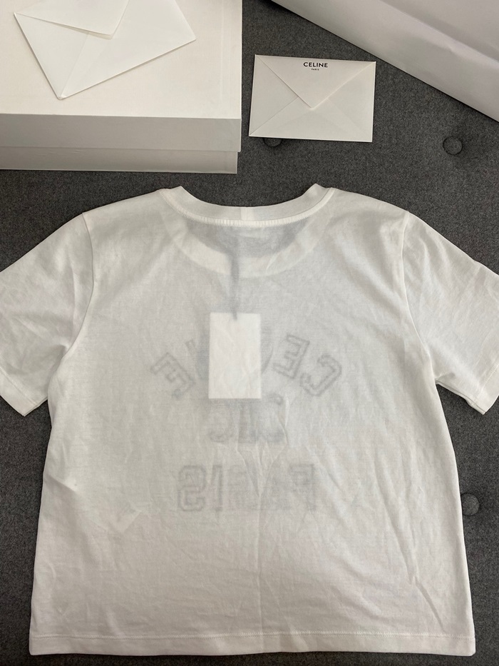 セリーヌレディースホワイト半袖Tシャツe190