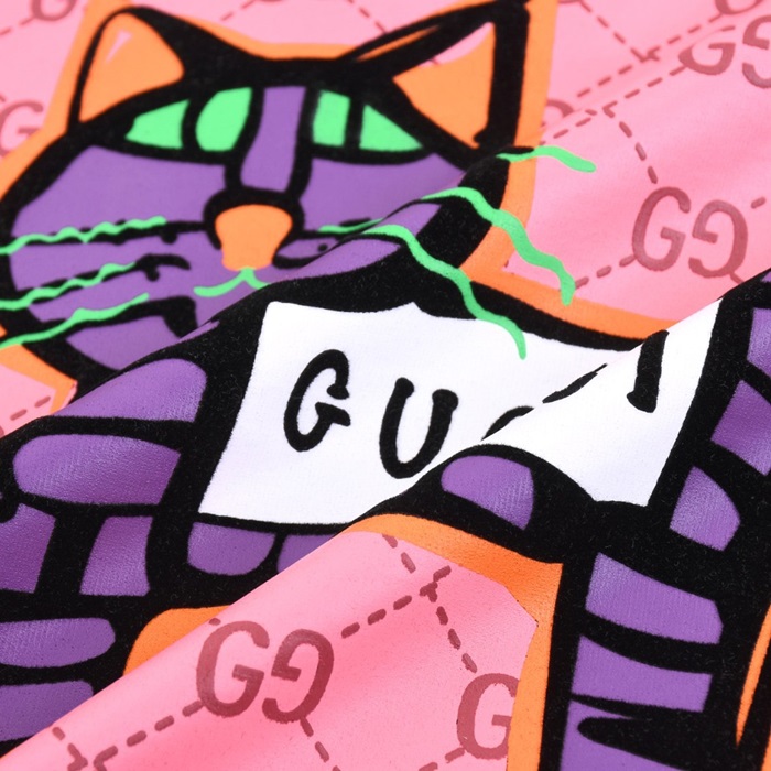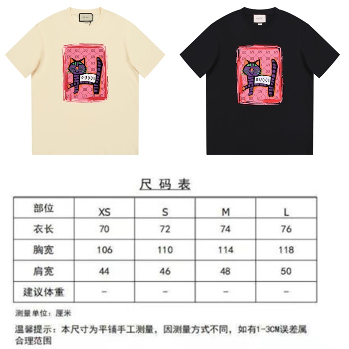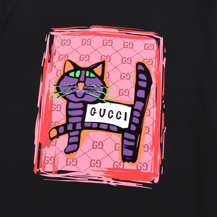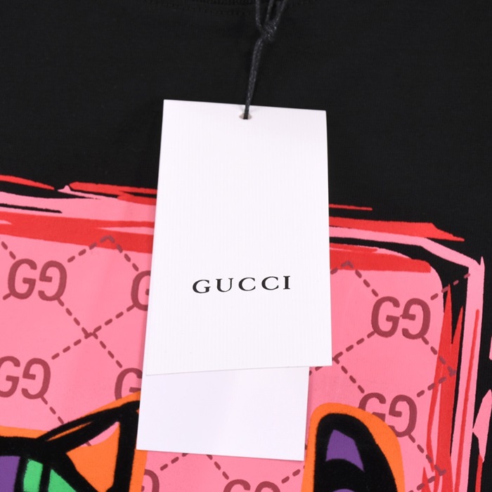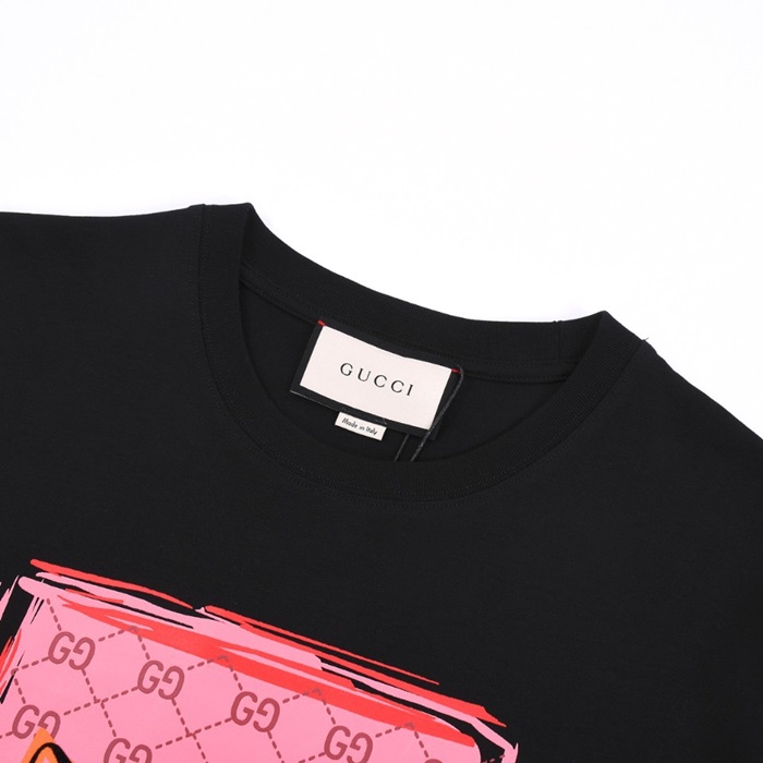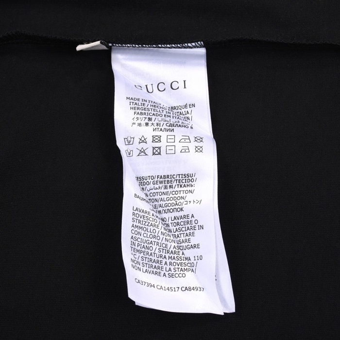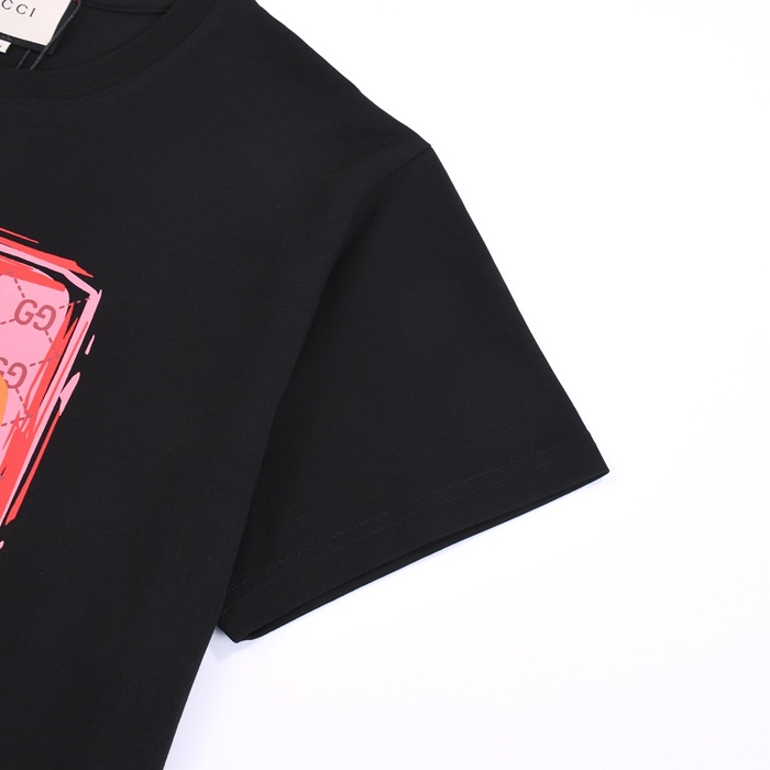 グッチユニセックスブラッククルーネック半袖Tシャツu934