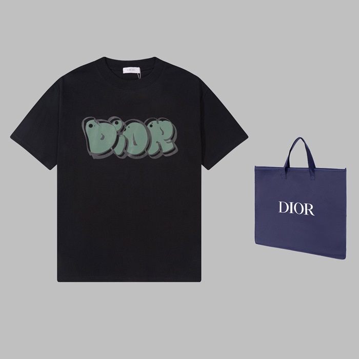 ディオールメンズブラッククルーネック半袖Tシャツi625