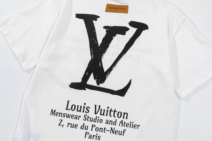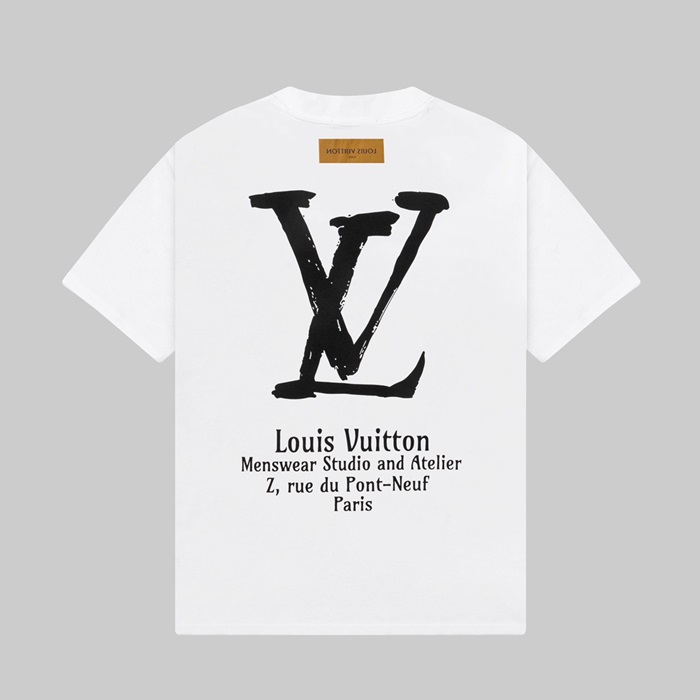 ルイヴィトンメンズクルーネックホワイト半袖Tシャツv1727