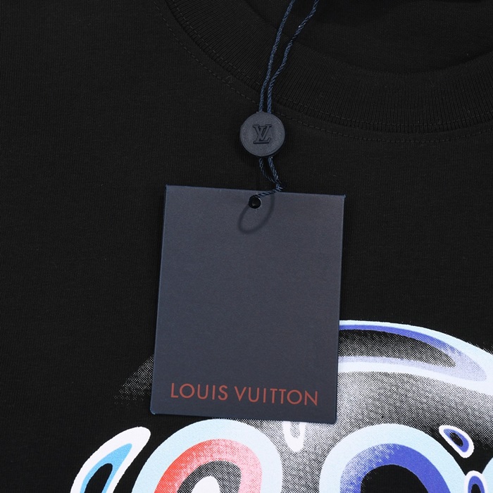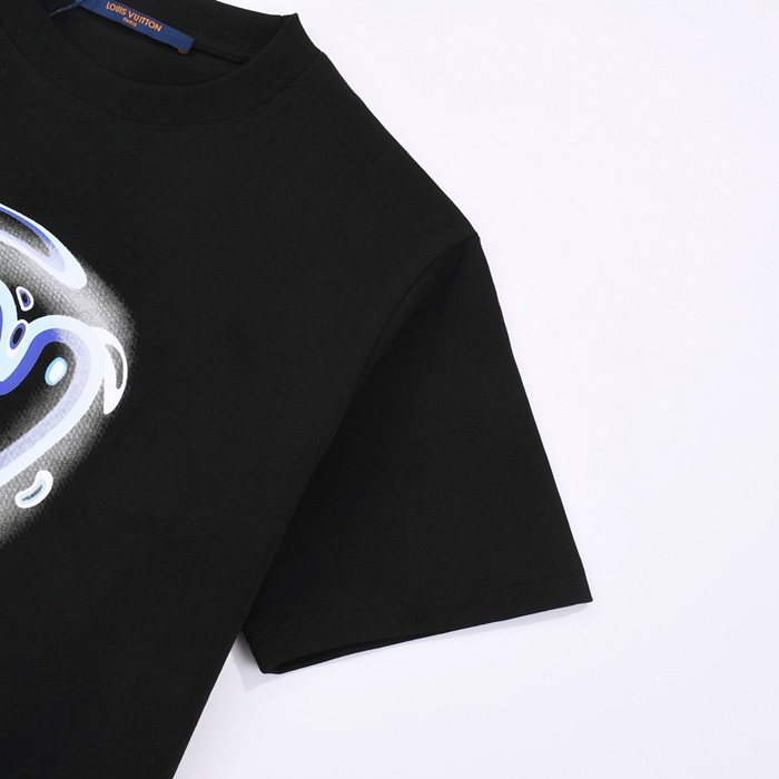 ルイヴィトンメンズクルーネックブラック半袖Tシャツv1730