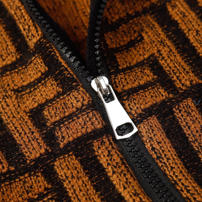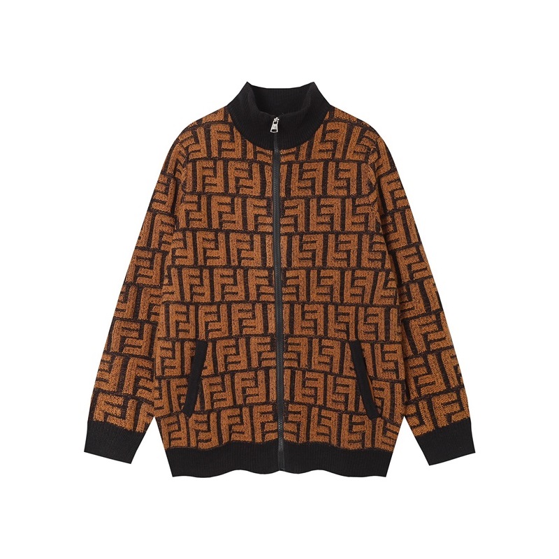 ェンディメンズブラウンジップアップニットe182