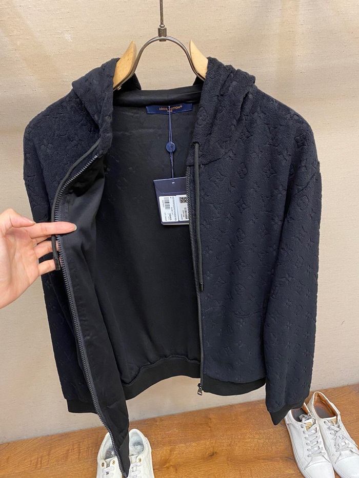 ルイヴィトンメンズブラックジップアップフーディv1734