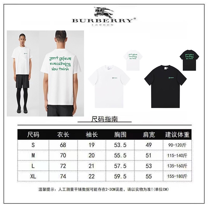 バーバリーメンズホワイトクルーネック半袖Tシャツu253
