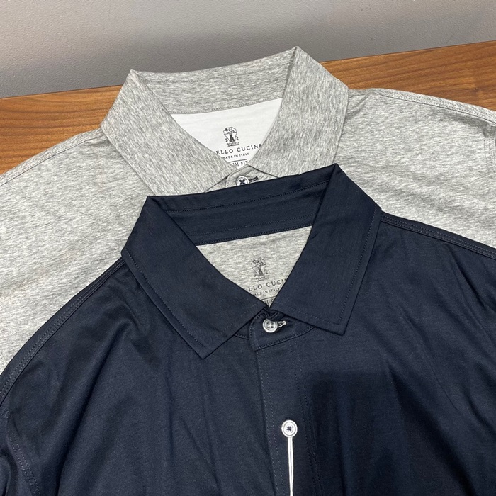 ブルネロクチネリメンズネイビーポロ長袖Tシャツu73