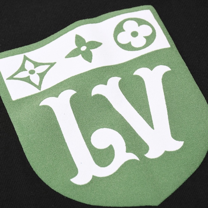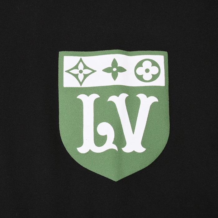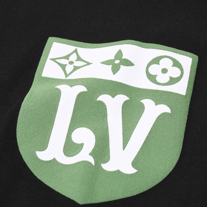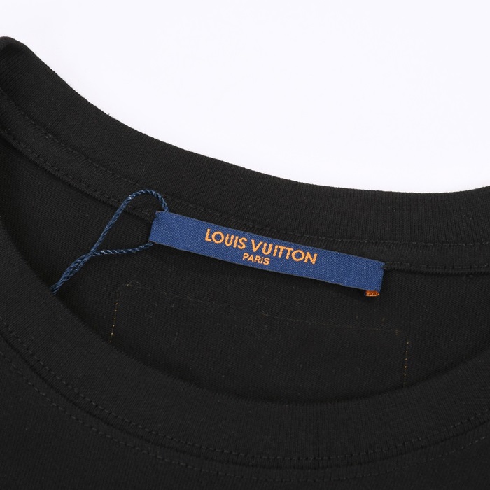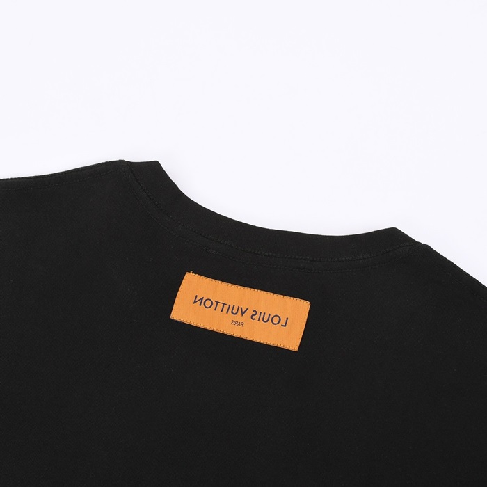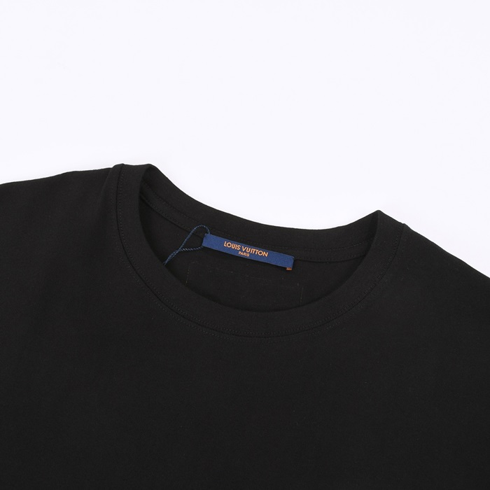 ルイヴィトンメンズクルーネックブラック半袖Tシャツv1750