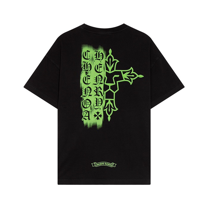 クロムハーツメンズブラッククルーネック半袖Tシャツh193