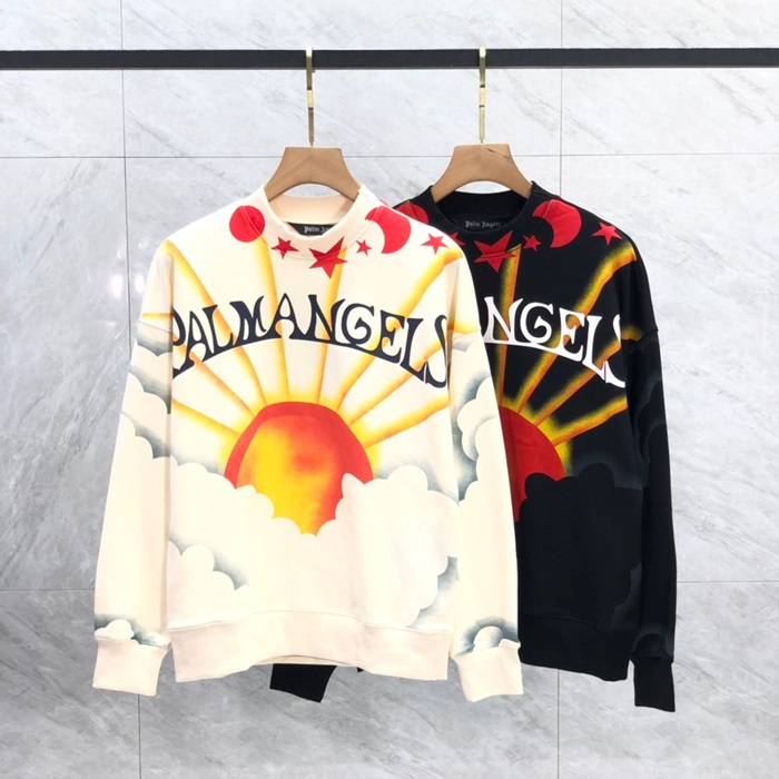 パームエンジェルスメンズブラッククルーネックスウェットシャツm409