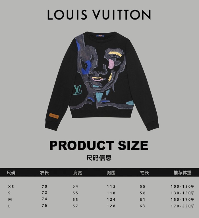 ルイヴィトンユニセックスブラックスウェットシャツv1753