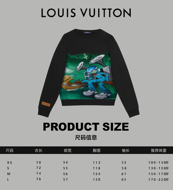 ルイヴィトンユニセックスブラックスウェットシャツv1755
