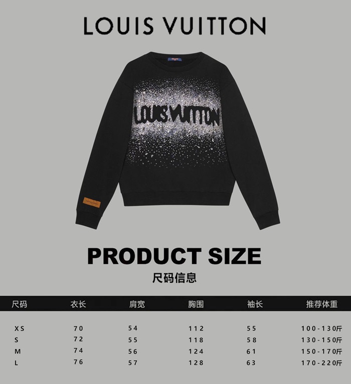 ルイヴィトンユニセックスブラックスウェットシャツv1762