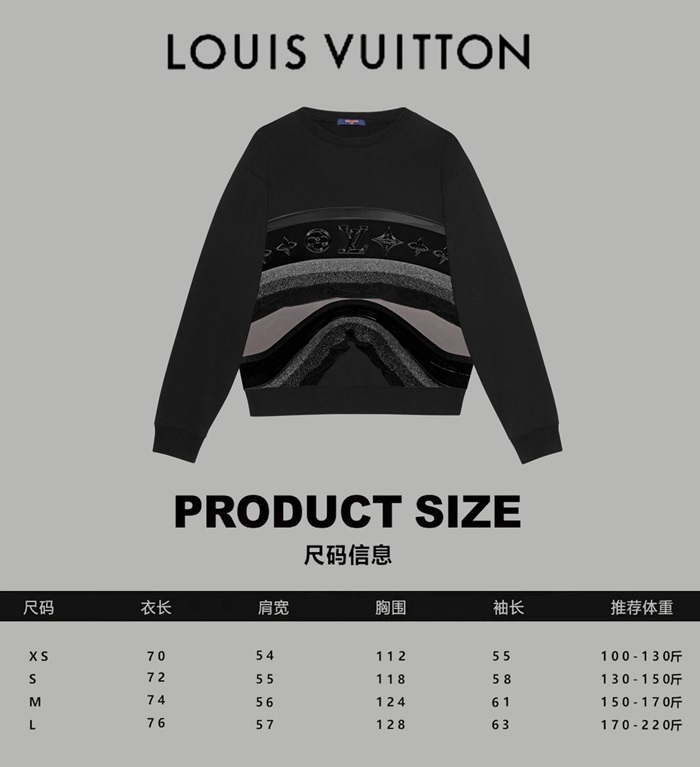 ルイヴィトンユニセックスブラックスウェットシャツv1763