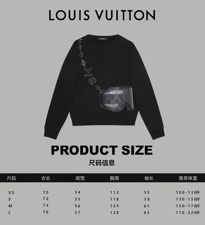 ルイヴィトンユニセックスブラックスウェットシャツv1767