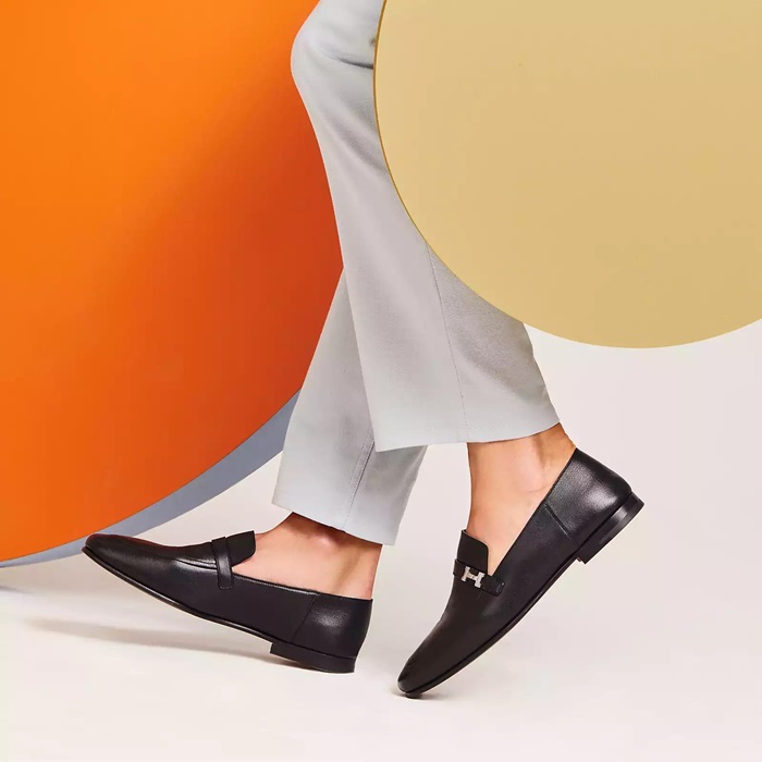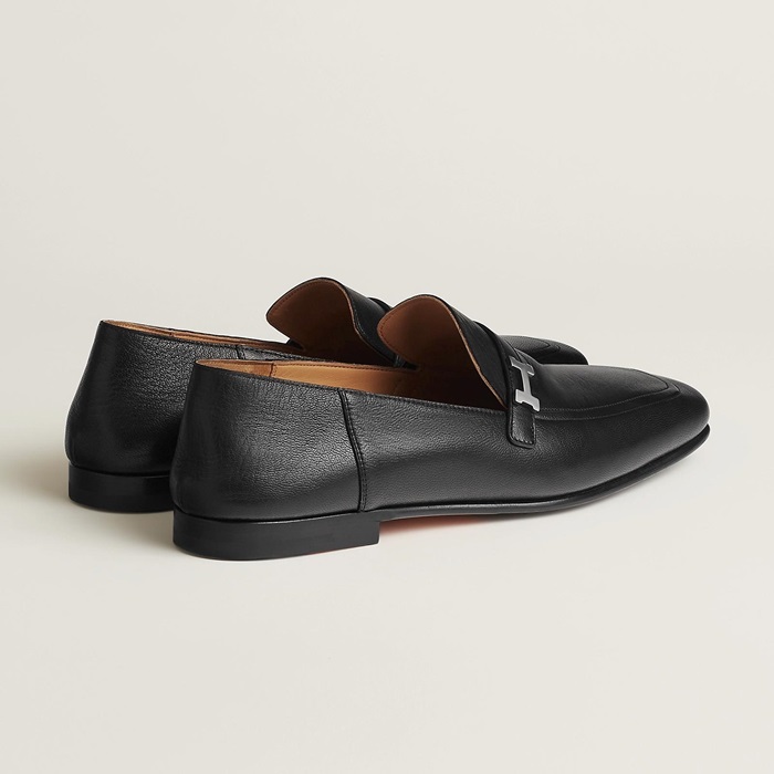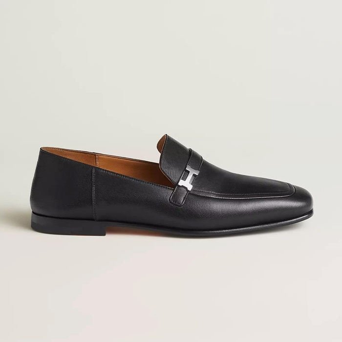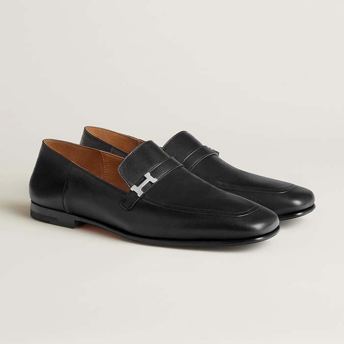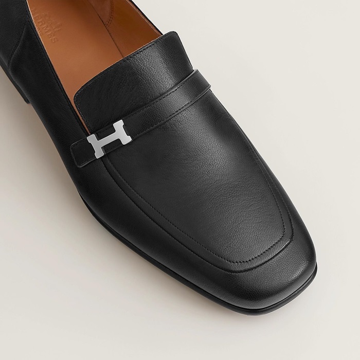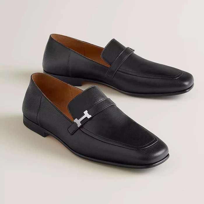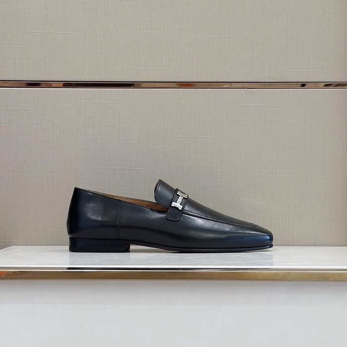 エルメスユニセックスレザーブラックローファーe266