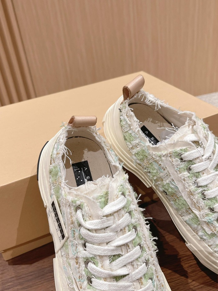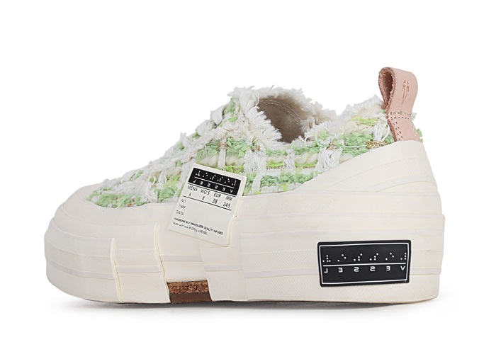 エックスヴェッセルユニセックスローツイードグリーンスニーカー.v18