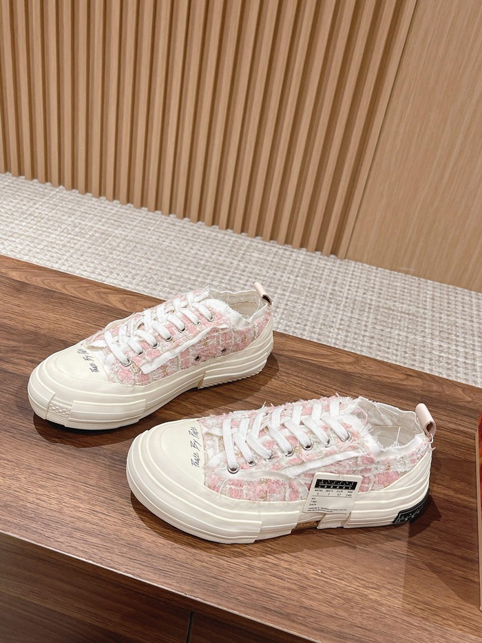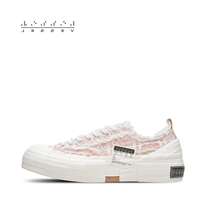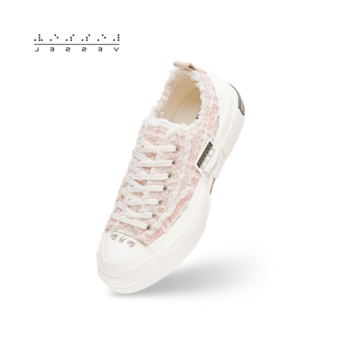 エックスヴェッセルユニセックスローミックスツイードピンクスニーカー.v24