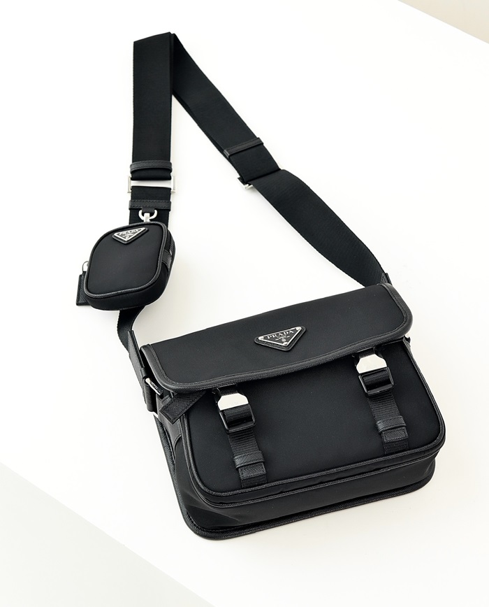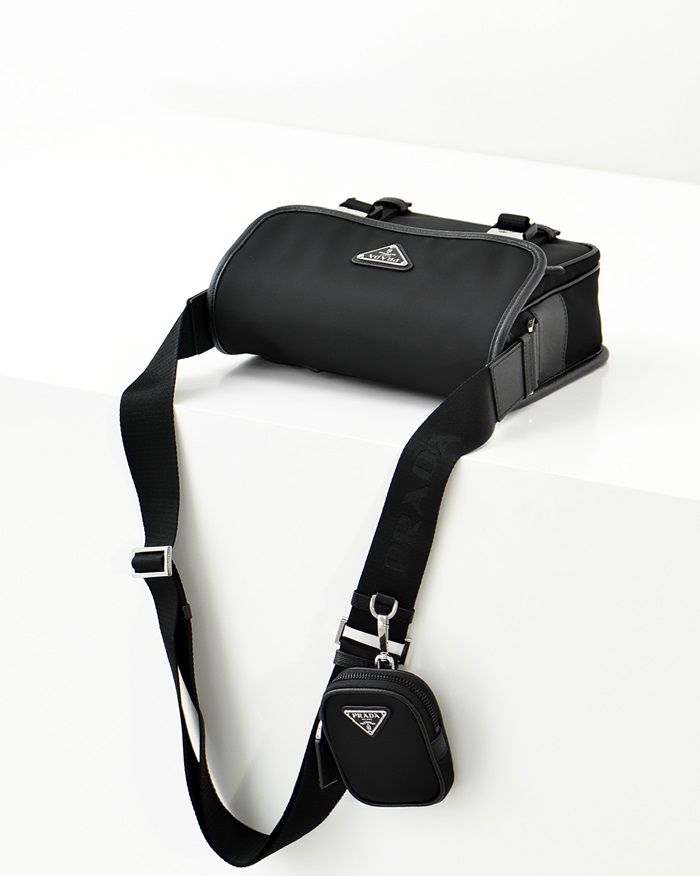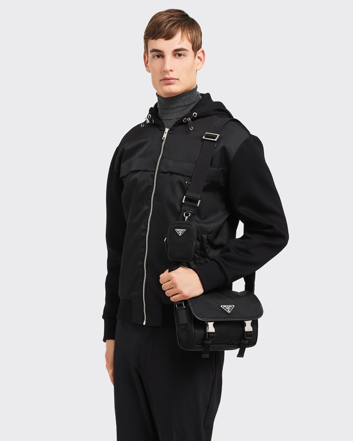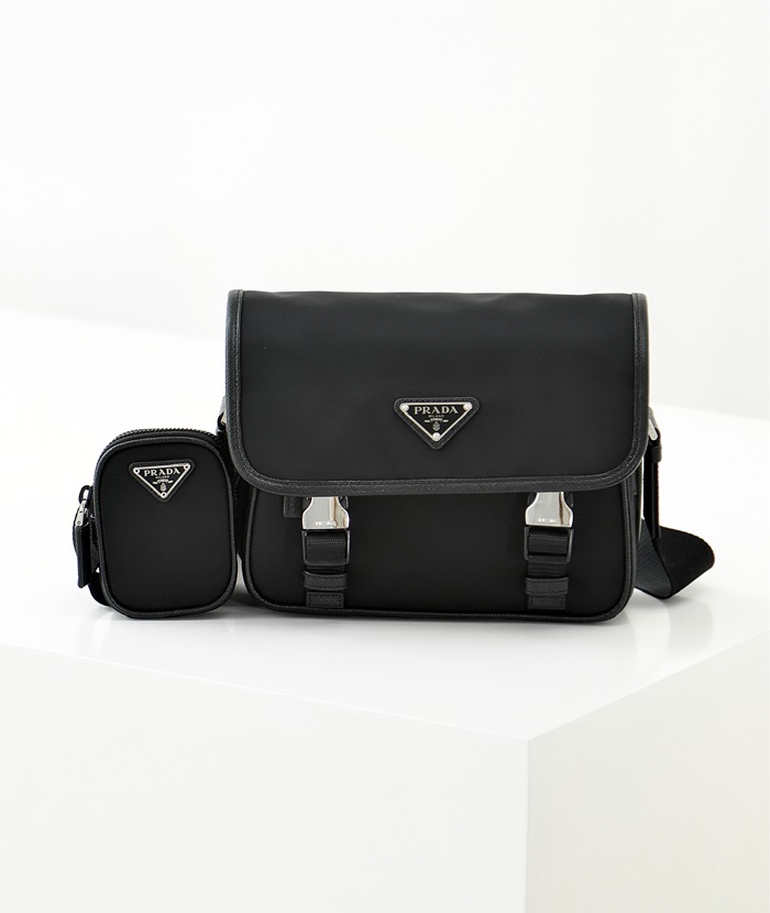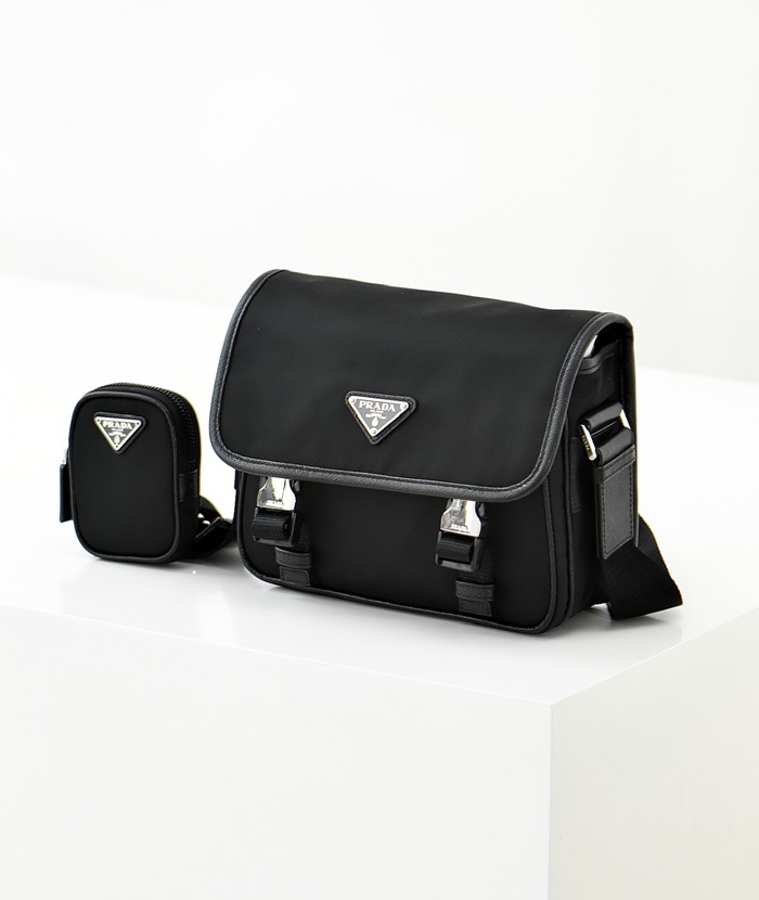プラダメンズリナイロンおよびサフィアーノレザーショルダーバッグr701