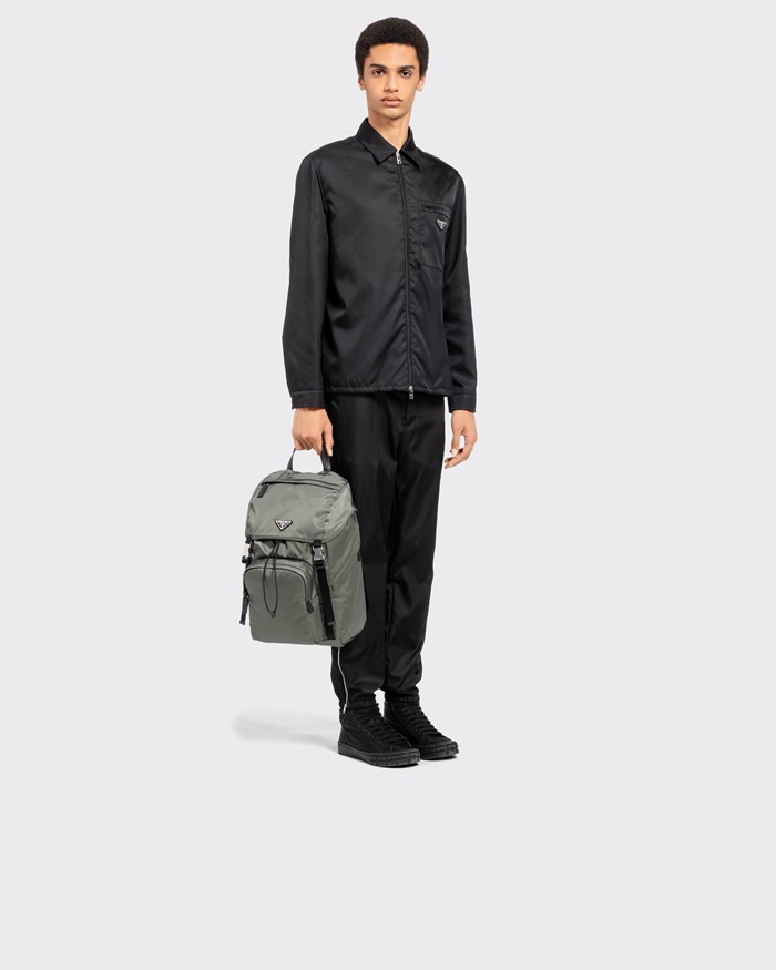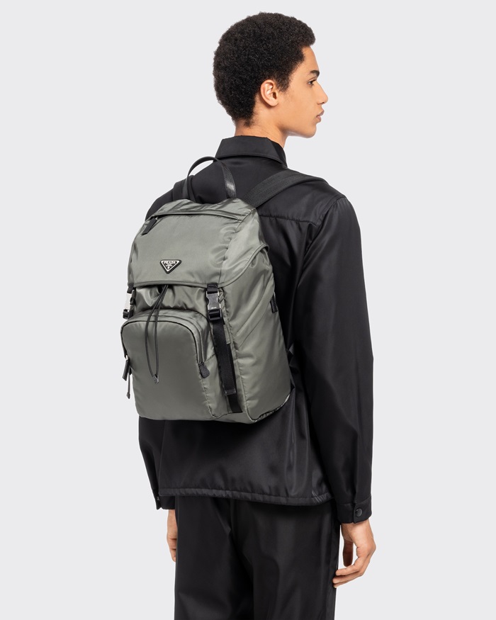 プラダメンズリナイロンおよびサフィアーノレザーバックパックグリーン2Z135r704