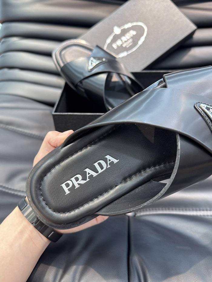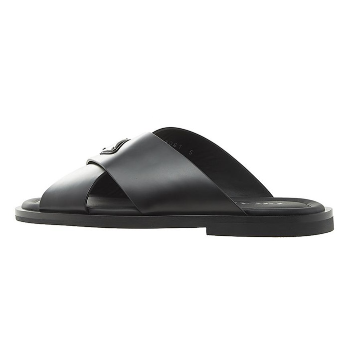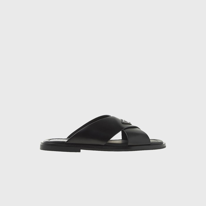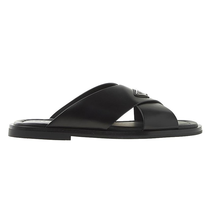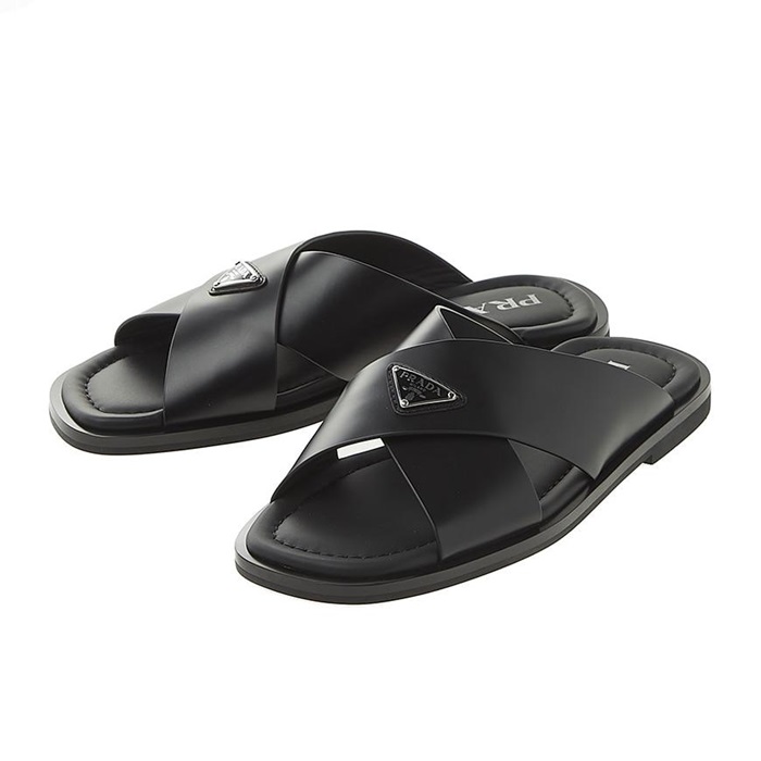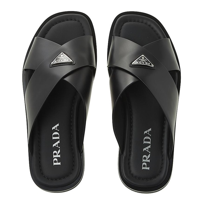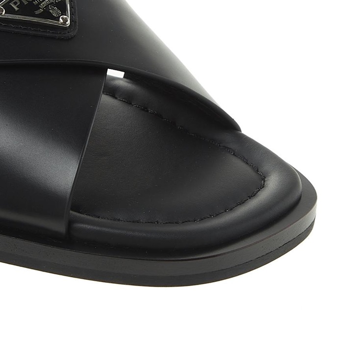 プラダメンズクロスレザーブラックサンダルr722