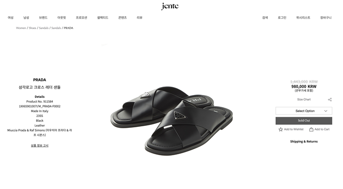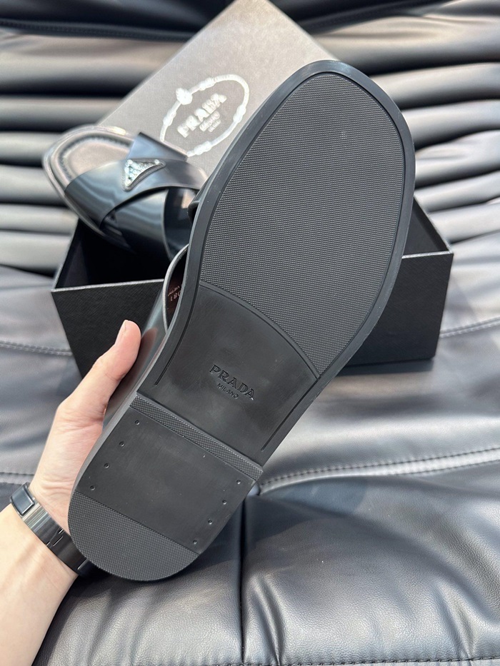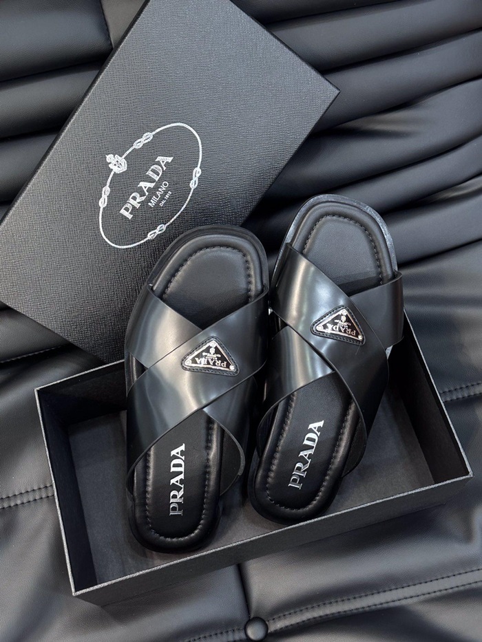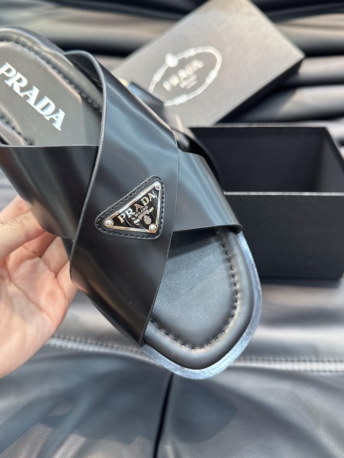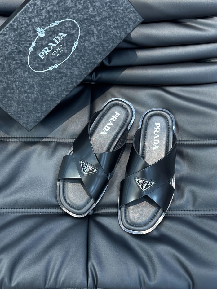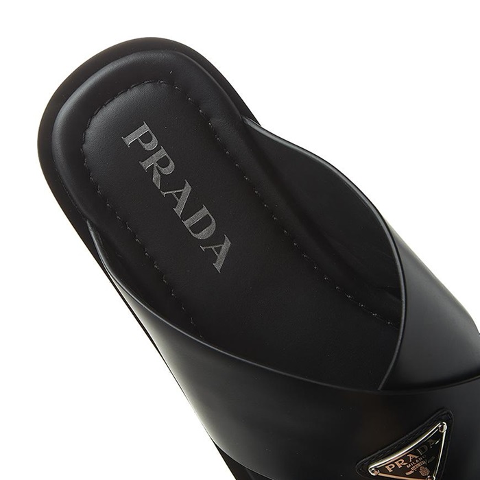 プラダメンズクロスレザーブラックサンダルr722