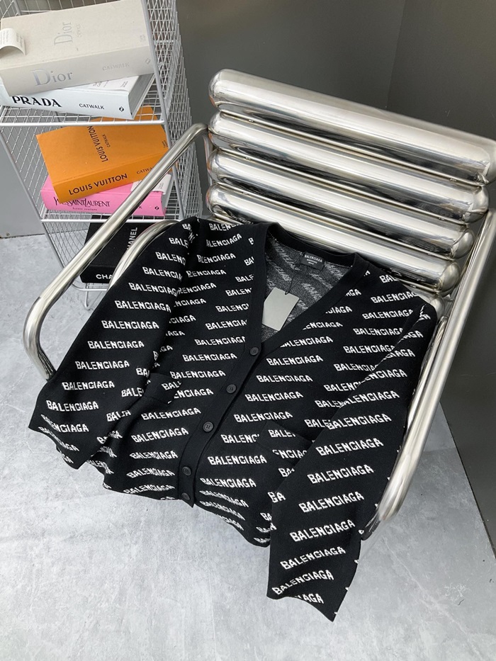 バレンシアガメンズブラックネックカーディガンa594