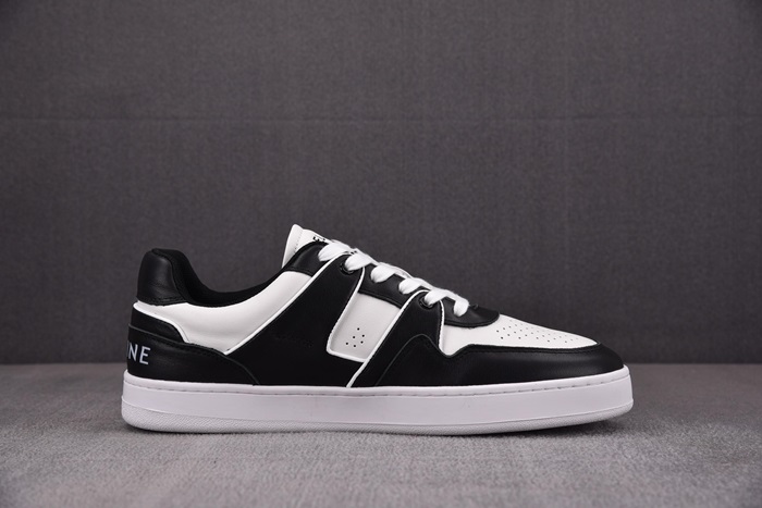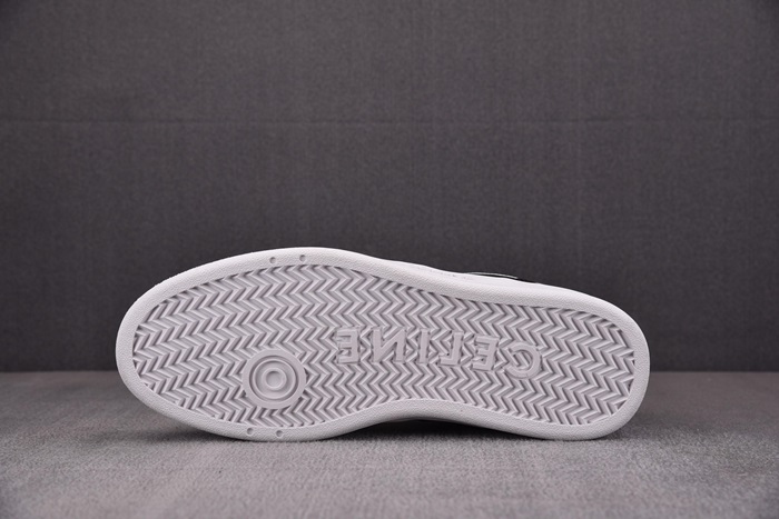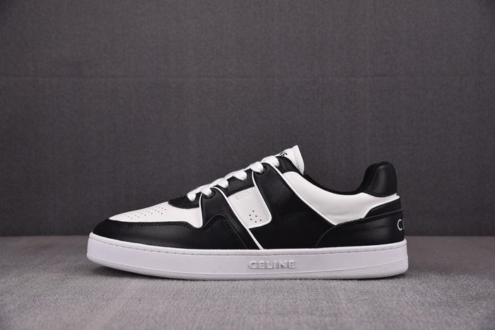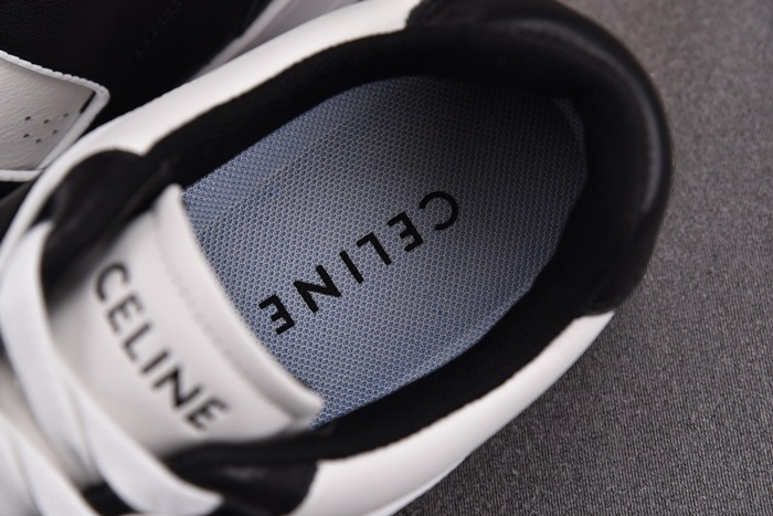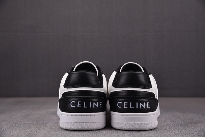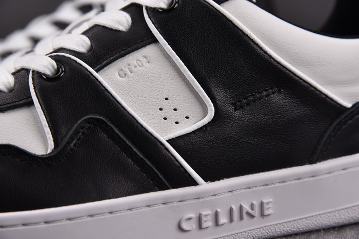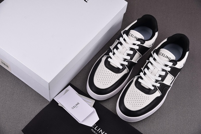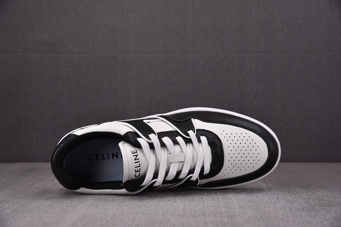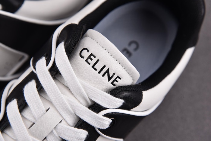 セリーヌユニセックストレーナーホワイト/ブラックローレースアップスニーカーe217