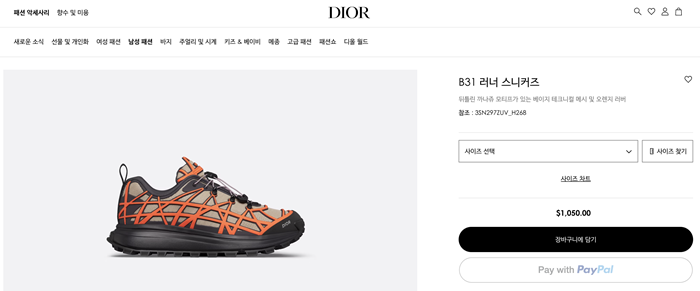ディオールメンズB31ランナーオレンジスニーカーi707