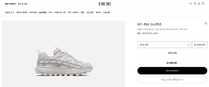 ディオールメンズB31ランナーホワイト/グレースニーカーi711