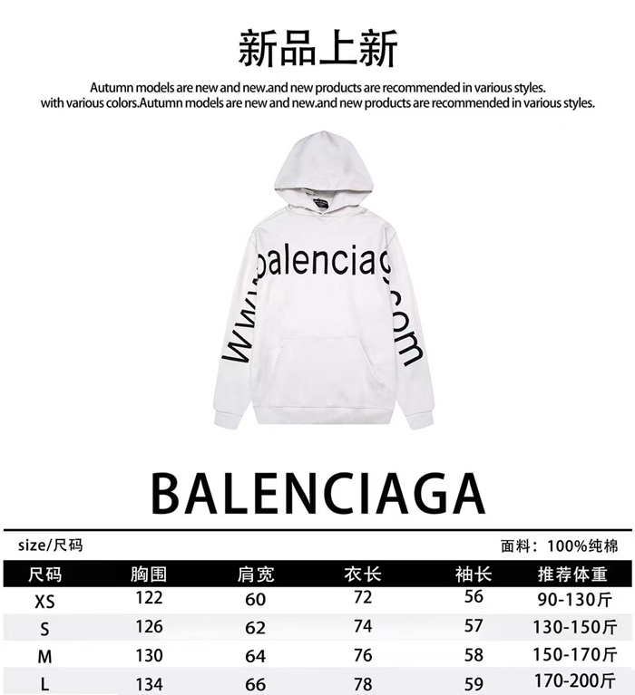 バレンシアガメンズホワイトフーディa701