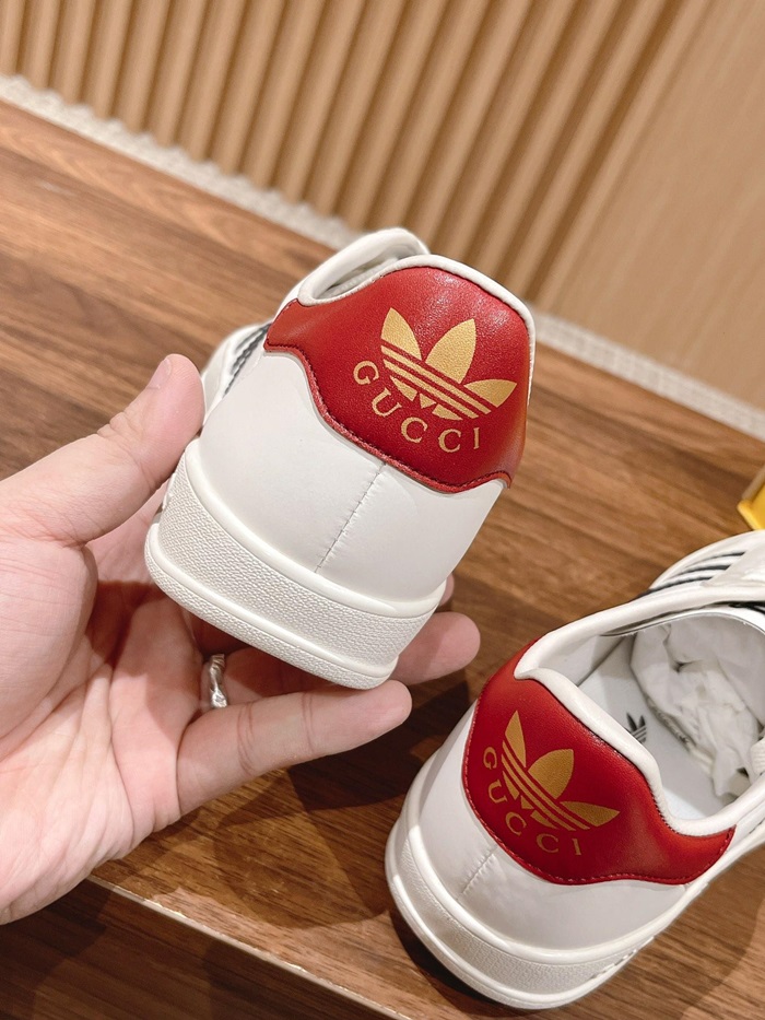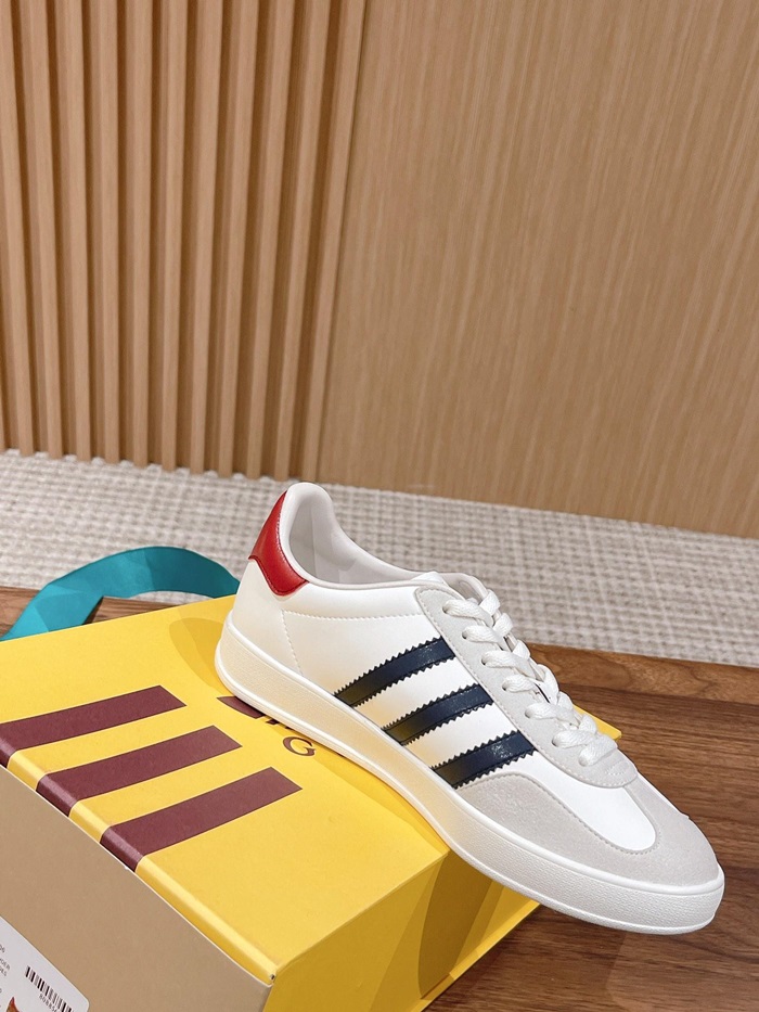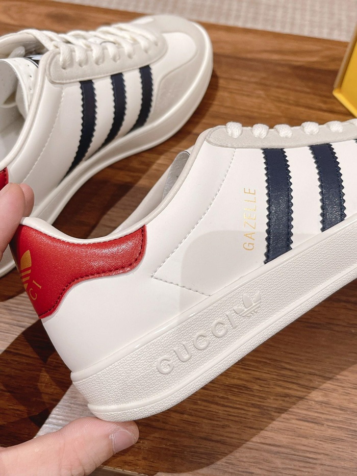 グッチアディダスユニセックスガゼルホワイト/ネイビー/レッドスニーカーu1004