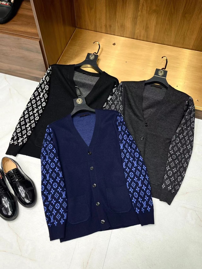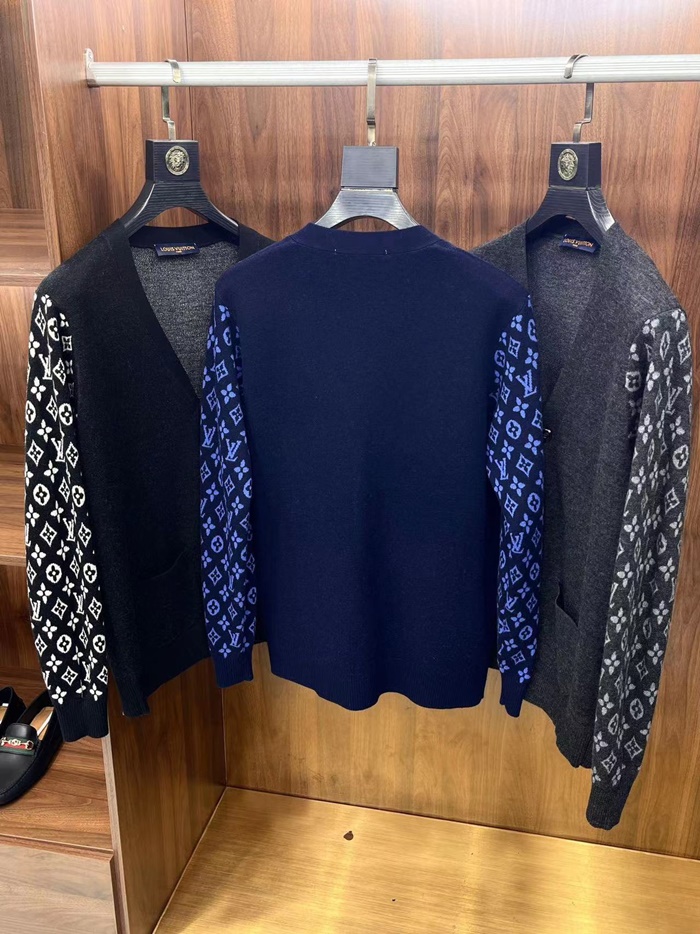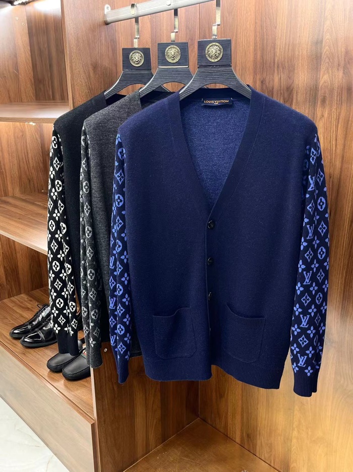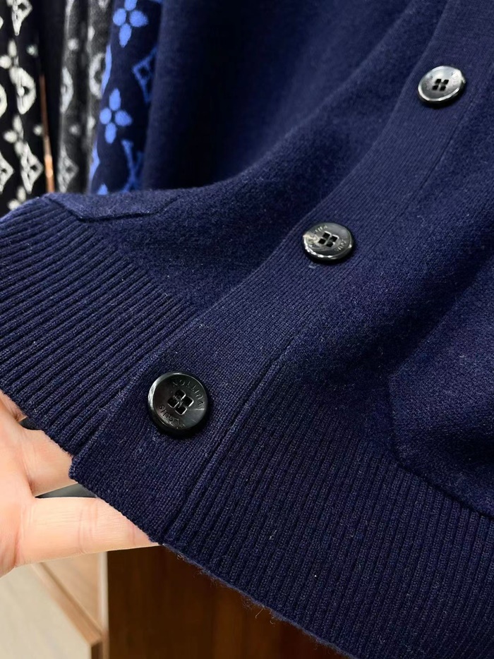 ルイヴィトンメンズネイビーネックカーディガンv1914