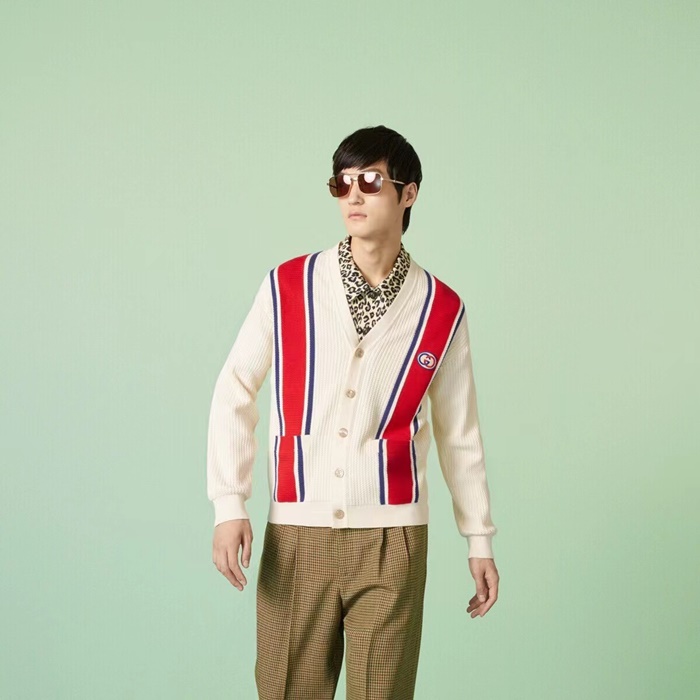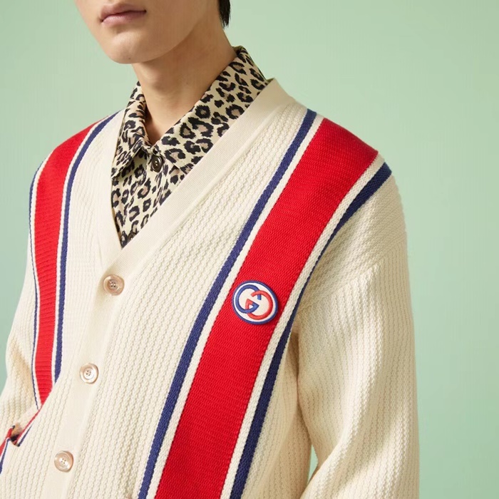グッチメンズアイボリーネックカーディガンu1019