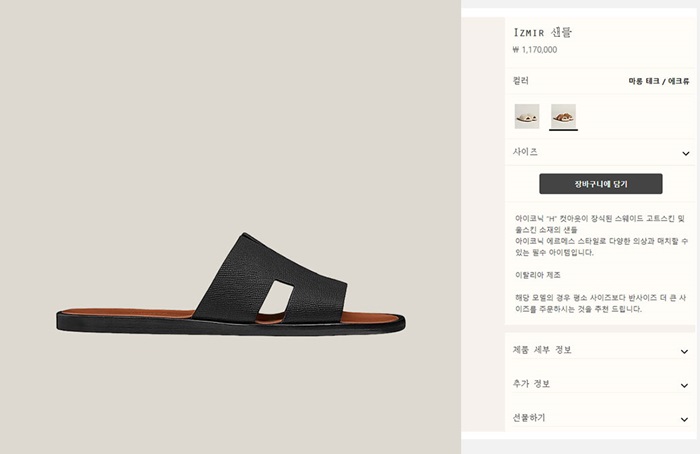 エルメスメンズイズミルカーフスキンサンダルe310