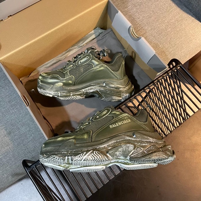 バレンシアガユニセックストリプルカーキスニーカーa692