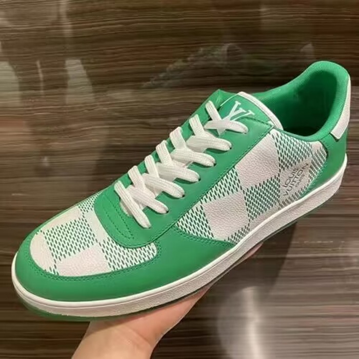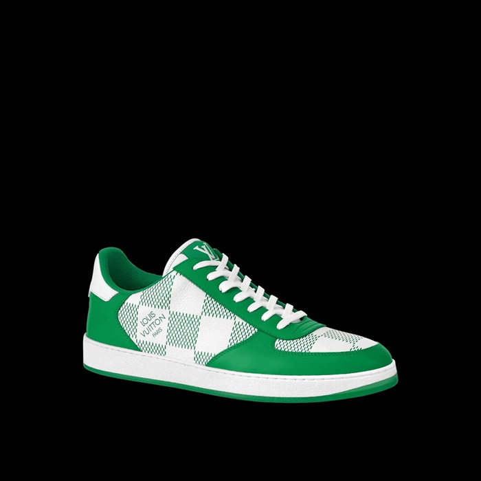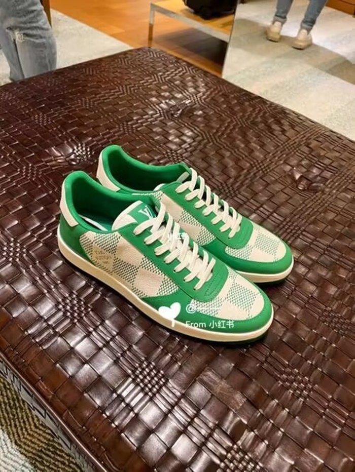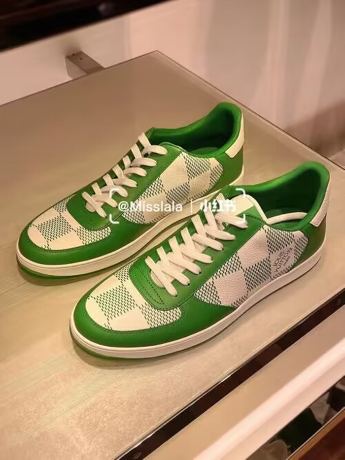 ルイヴィトンメンズリボリーチェックグリーンスニーカーv1930