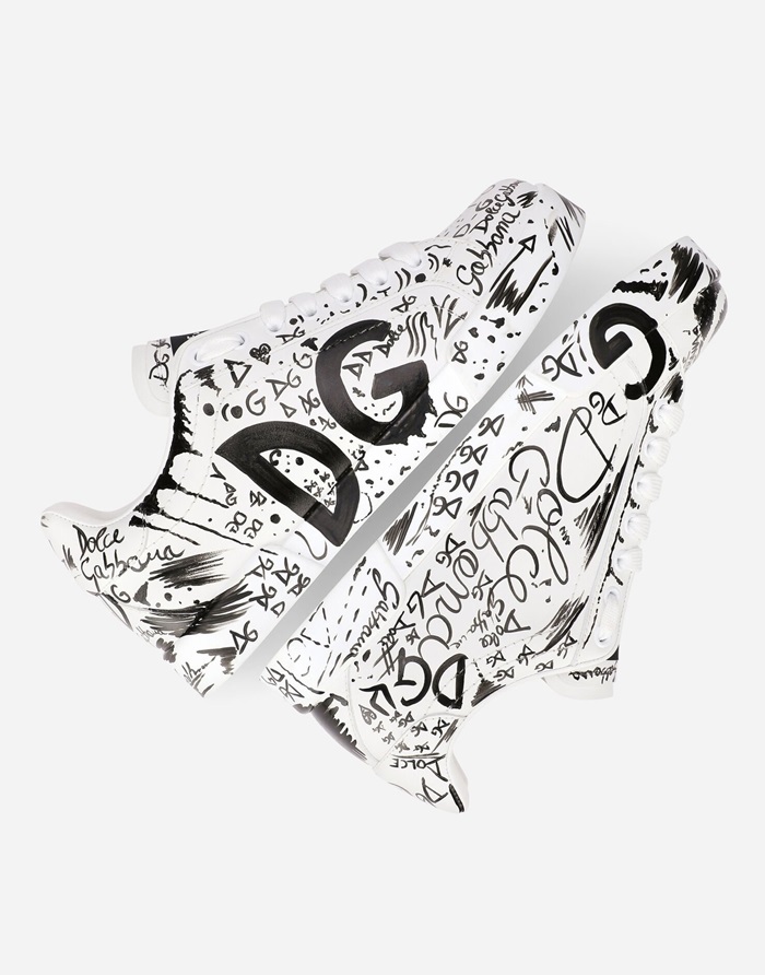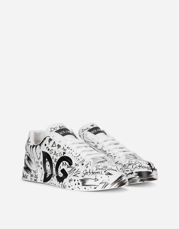 ドルチェ&ガッバーナメンズプリントカーフスキンポルトフィーノスニーカーl497
