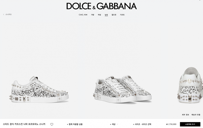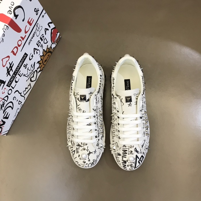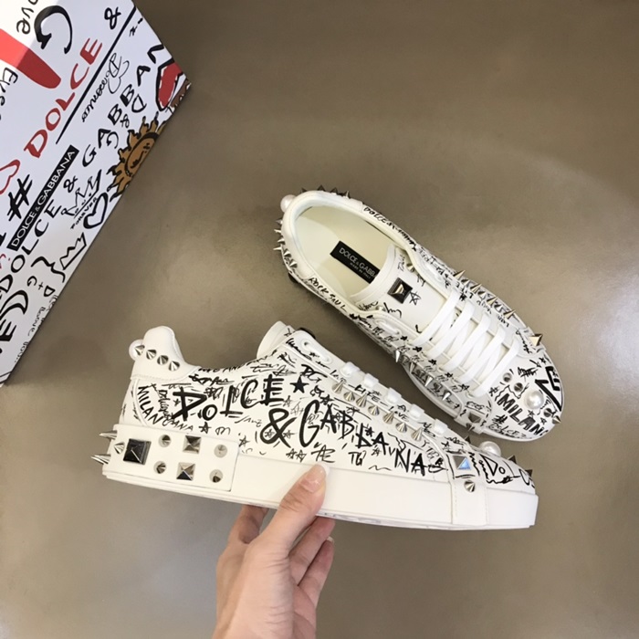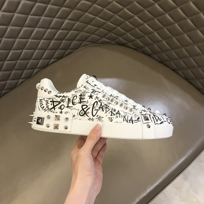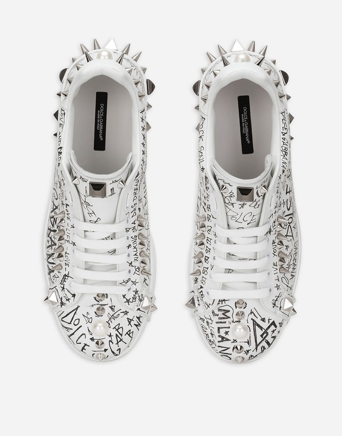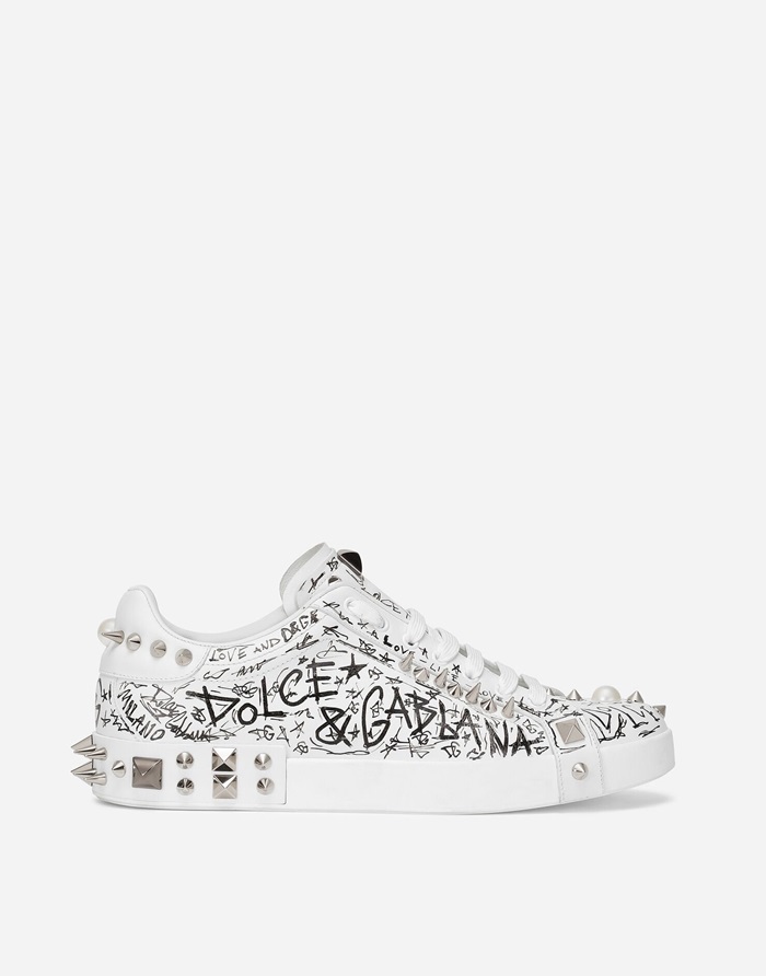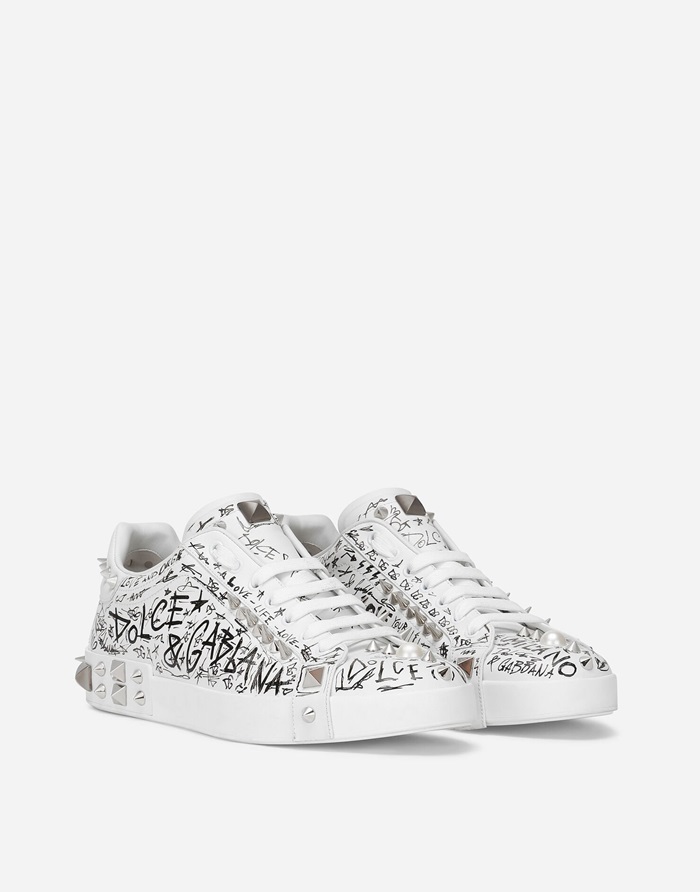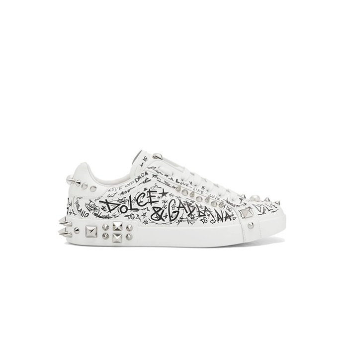 ドルチェ&ガッバーナメンズスタッドカーフスキンナッパホワイトスニーカーl500