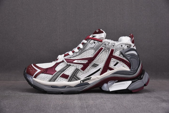 バレンシアガユニセックスランナー7グレーバーガンディスニーカーa703