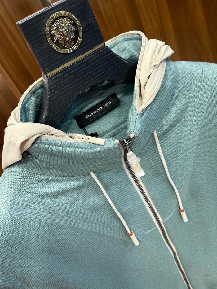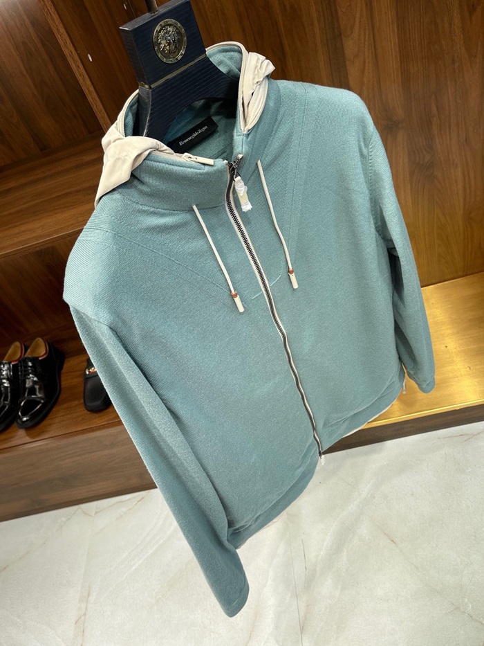 エルメネジルドゼニアメンズミントフードジャケットe113