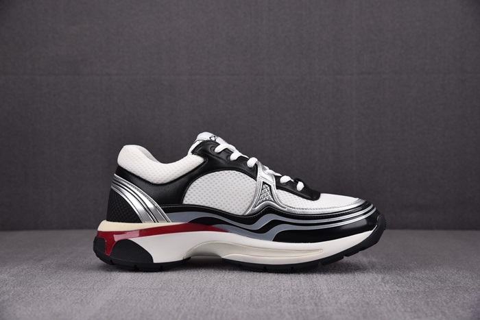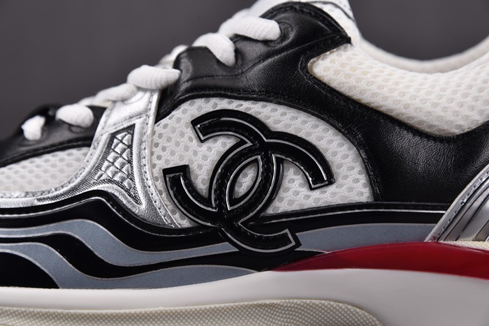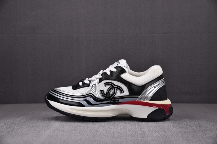シャネルレディースシャシックスホワイト/ブラック/レッドテニススニーカーh530